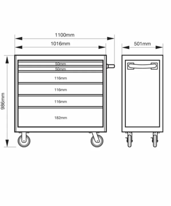 - Lock & Go! latching system prevents drawers from opening when the trolley is being moved