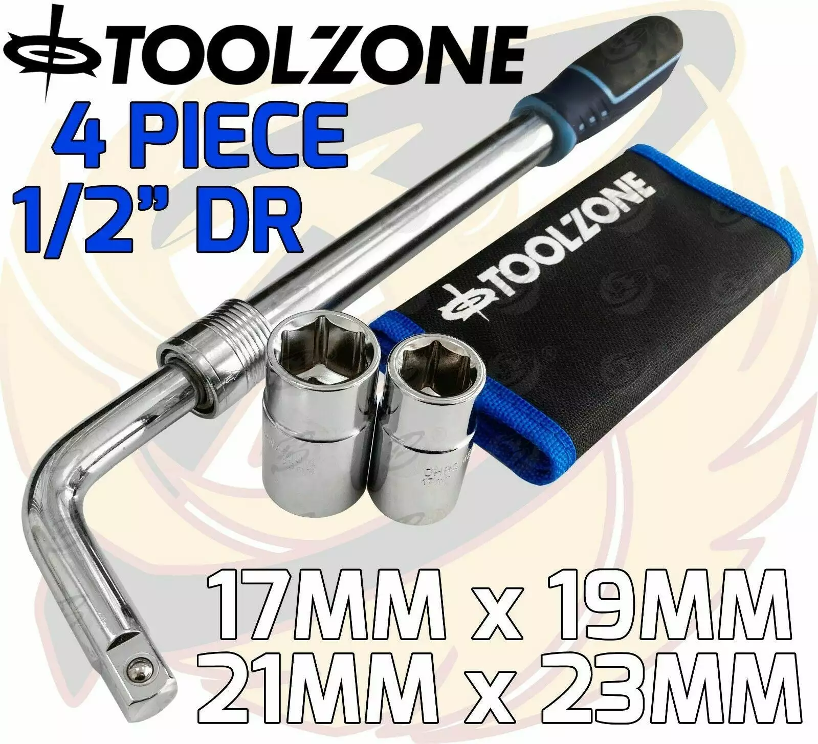 BERLIN TOOLS Toolzone Tyre Wrench Set 1/2″ Dr Extendable Handle Socket Nut Wrench 17mm 19mm 21mm 23mm