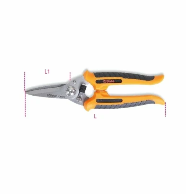 - Multiuse scissors, straight blades made in stainless steel, with micro teeth