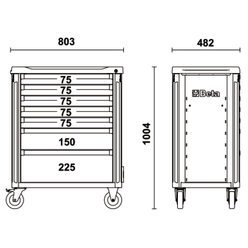 ⢠7 drawers (588Ć367 mm) with ball bearing slides: