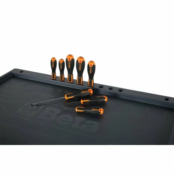 • Multi-purpose top with anti-fall edges and eight holes for accommodating screwdrivers