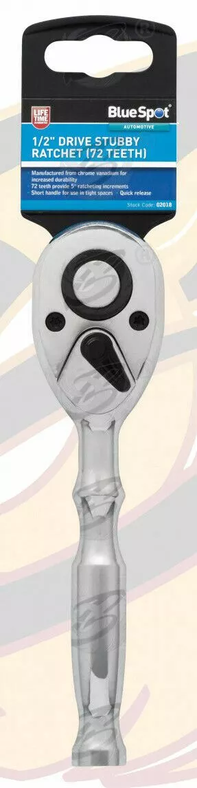 BlueSpot 1/2″ Drive 72T Tooth Quick Release Stubby Ratchet Handle 1/2″Dr 72 Tooth Socket