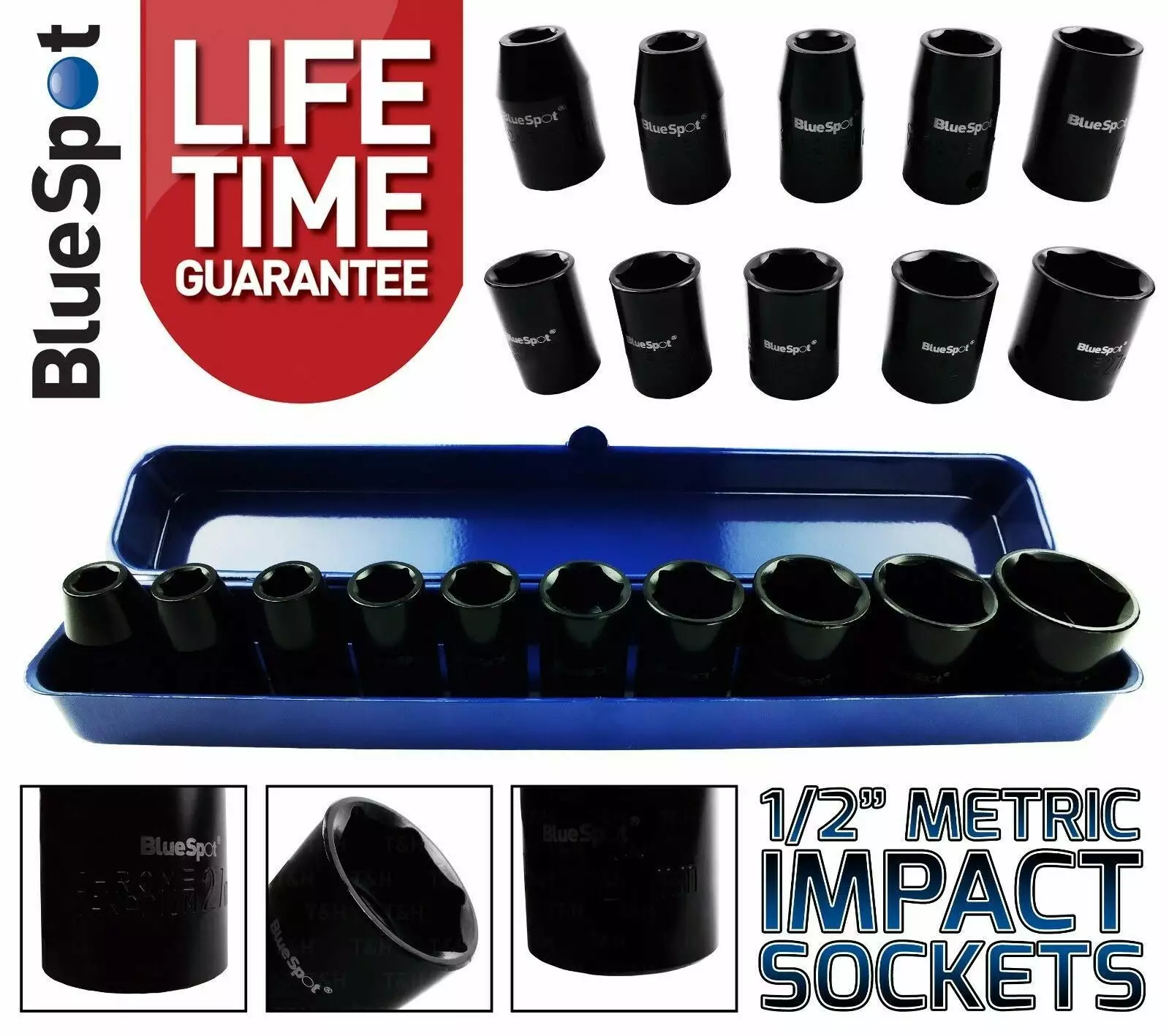 BlueSpot 1/2″Inch Drive IMPACT Socket Set Shallow Stubby Impact Sockets 9mm-27mm 6PT Hex