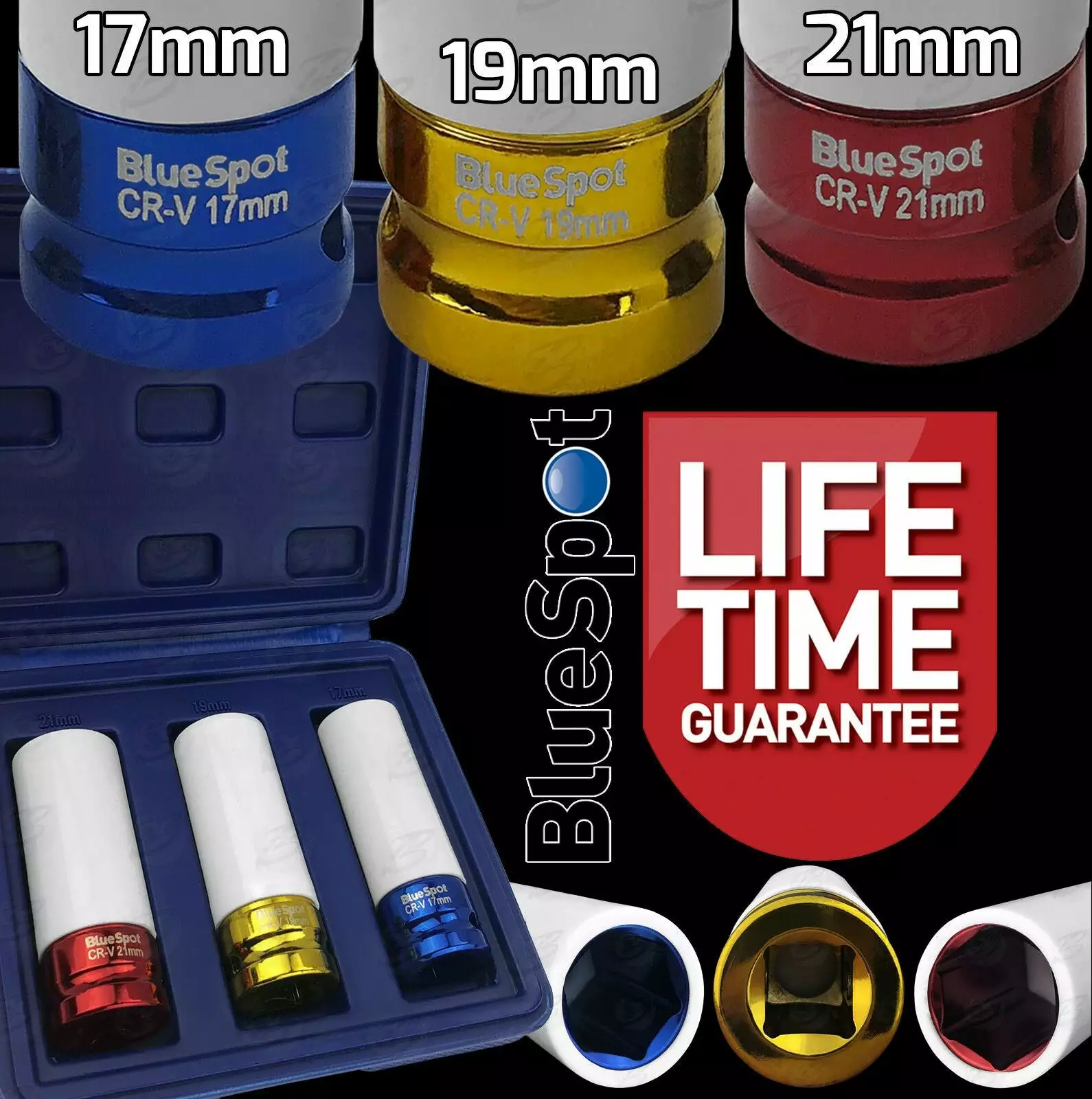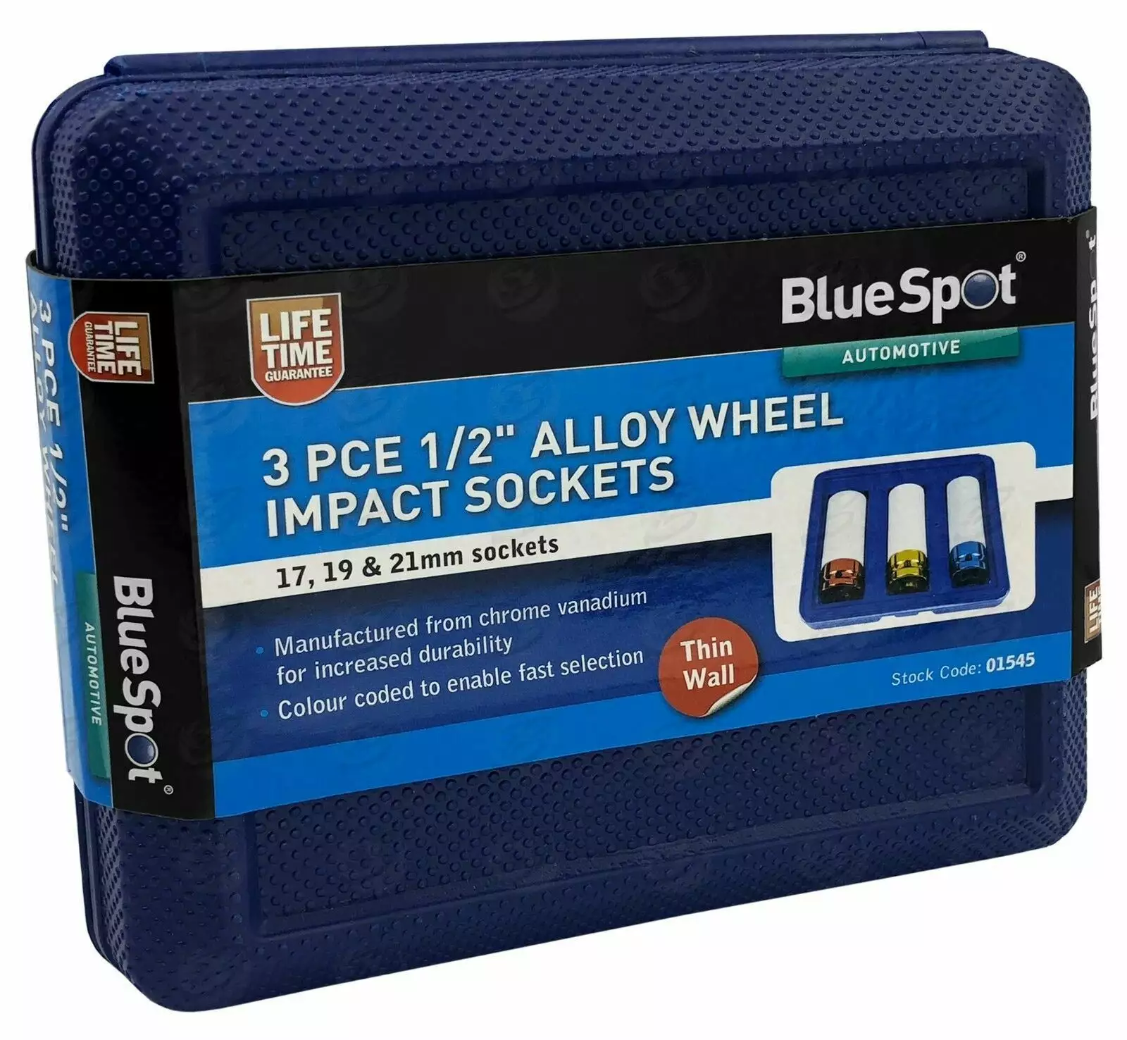 Be the first to review “BlueSpot Alloy Wheel Nut DEEP Thin Wall Impact Socket Set 1/2″drive 17mm 19mm 21mm IMPACT” Cancel reply