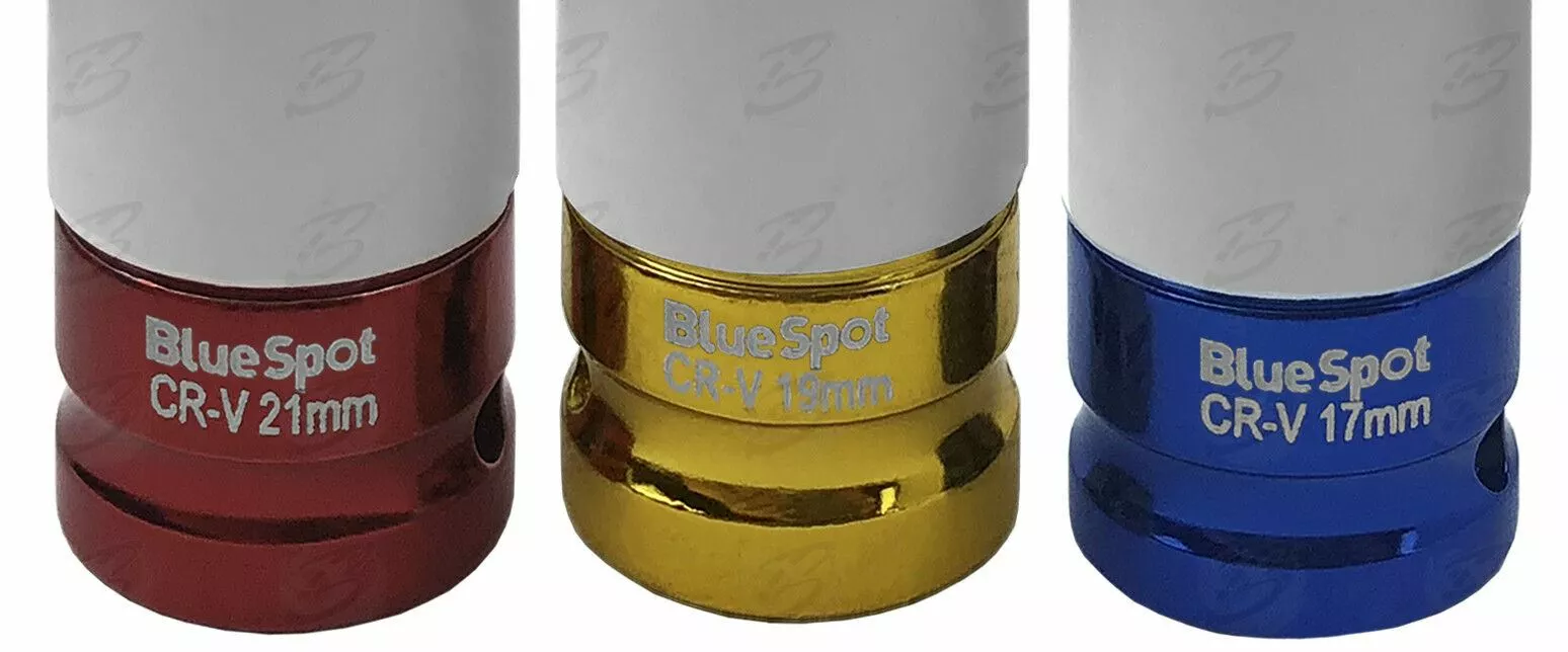 BlueSpot Alloy Wheel Nut DEEP Thin Wall Impact Socket Set 1/2″drive 17mm 19mm 21mm IMPACT