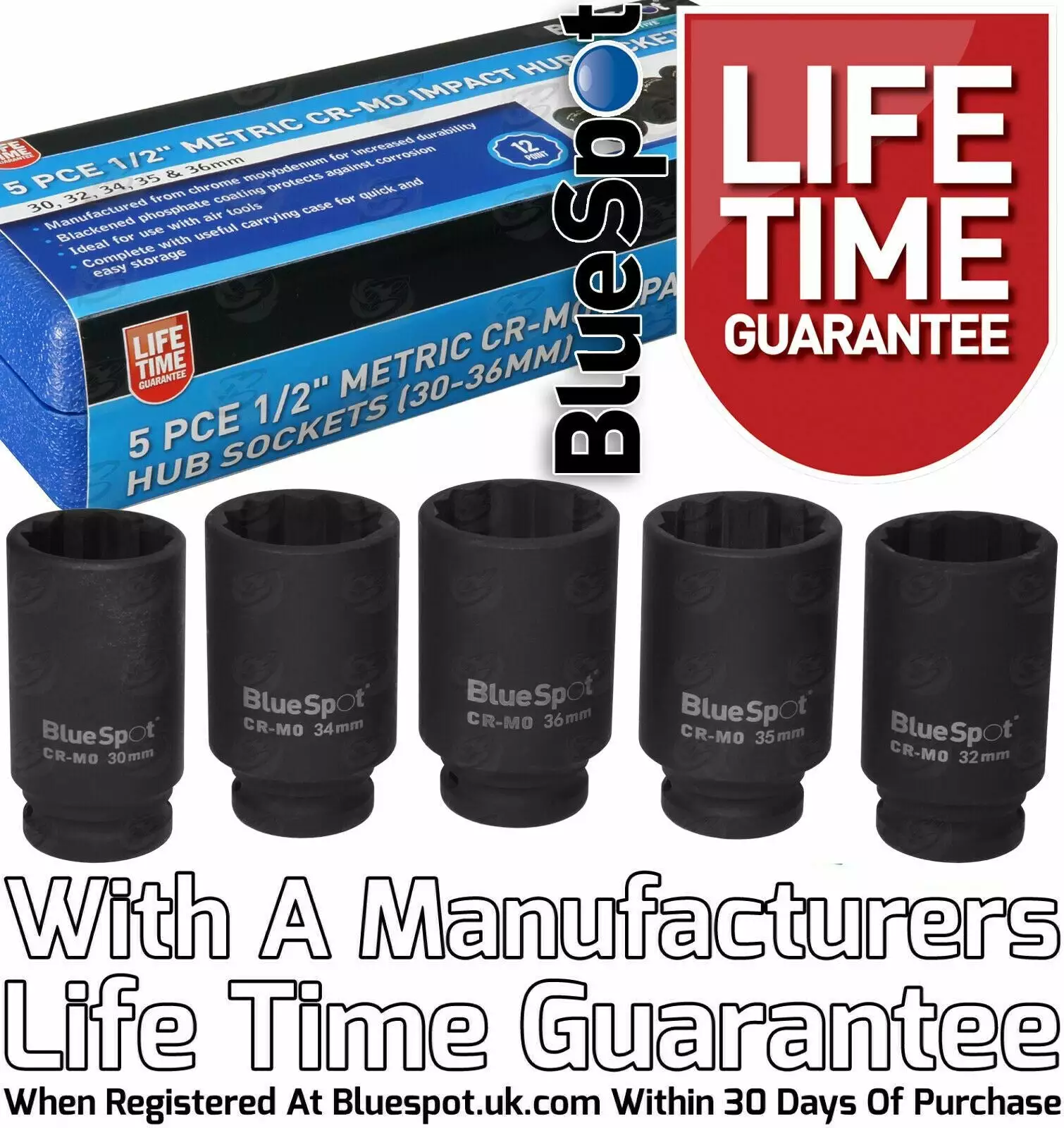 Also Includes – 5pc 1/2″Dr Deep IMPACT Axle Hub Nut Socket Set 30mm Through To 36mm