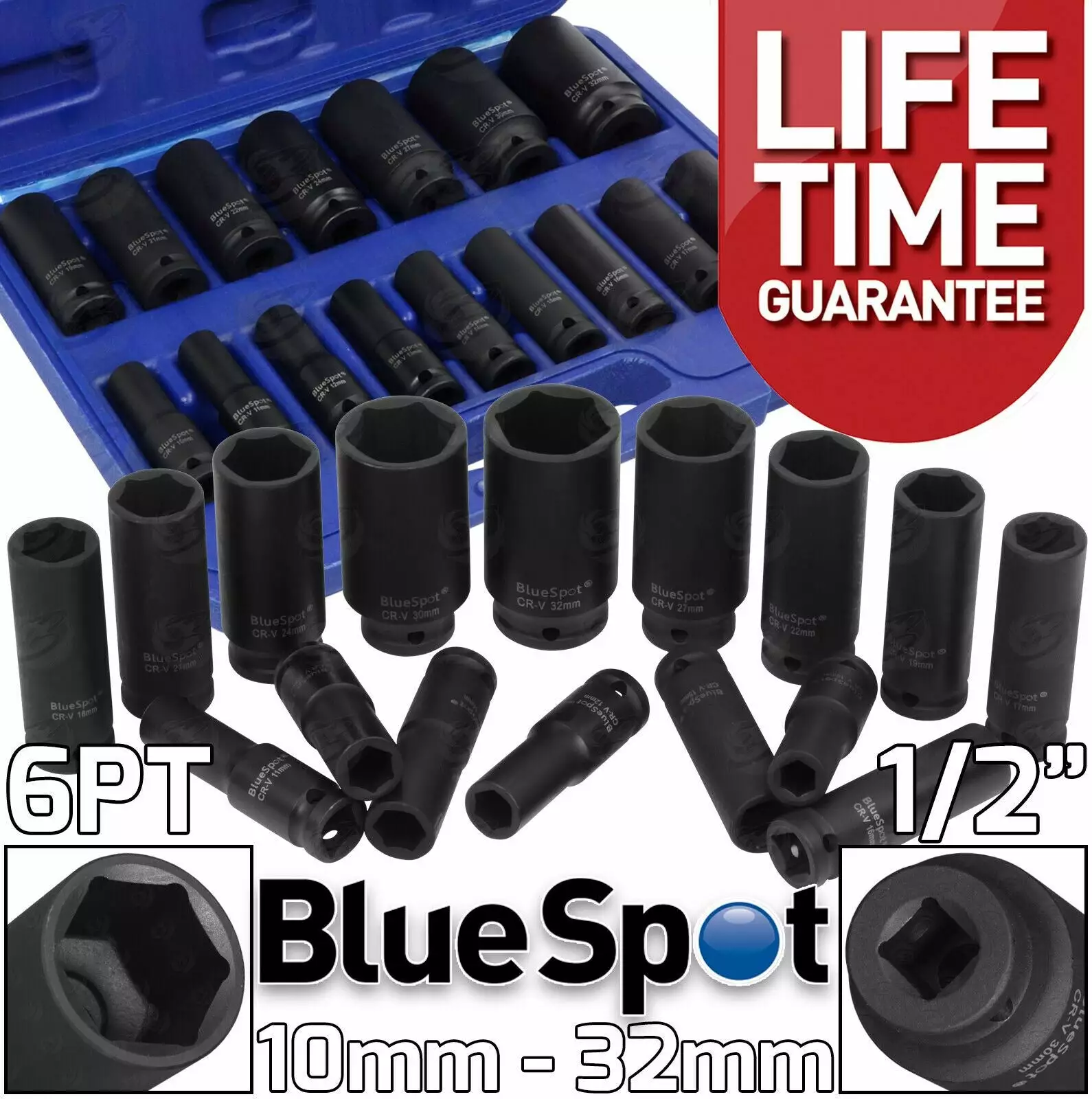 BlueSpot DEEP IMPACT SOCKET Set 1/2″Dr 10mm-32mm 6pt Hex Long Reach Sockets HEAVY DUTY 16