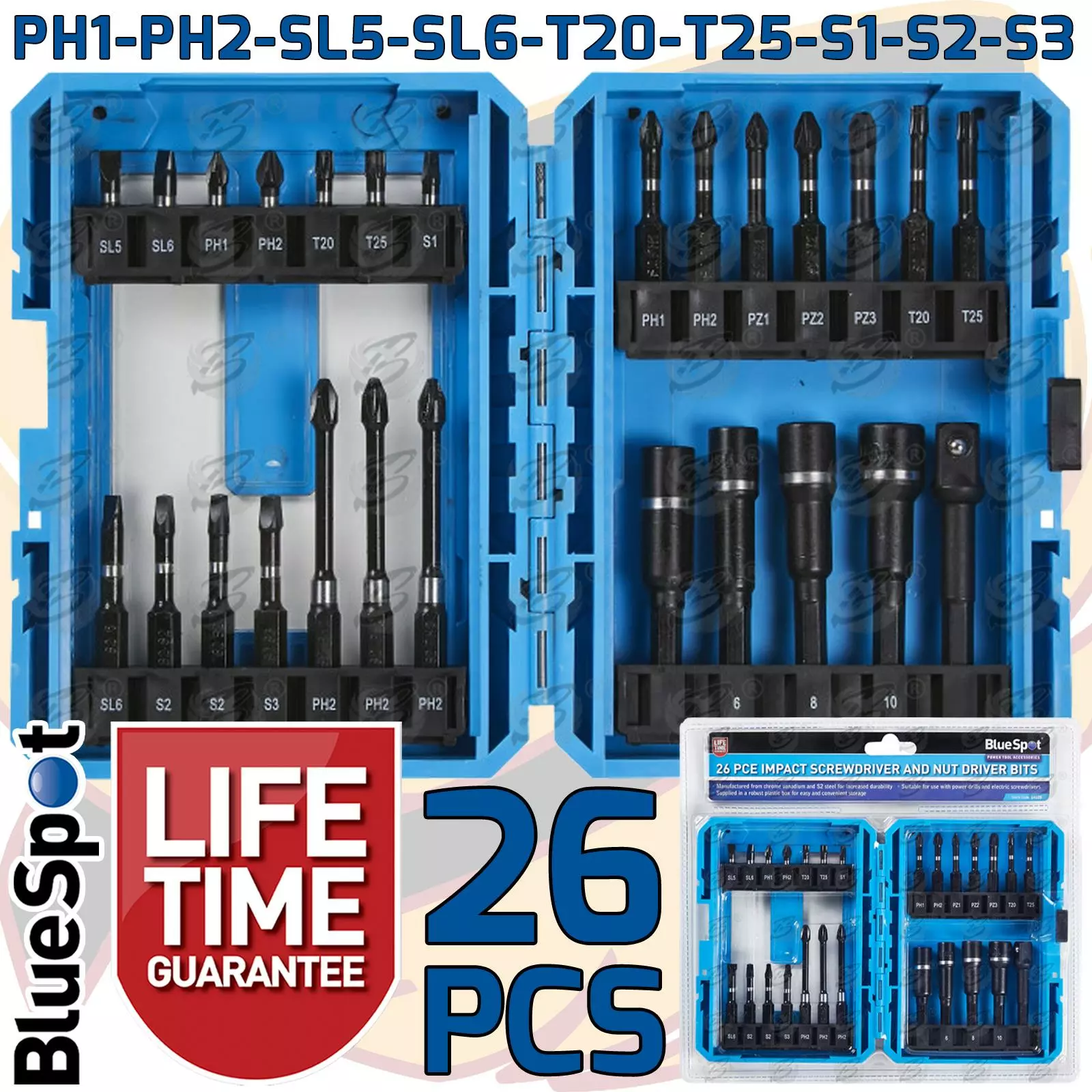 BlueSpot Impact Driver Bit Set PZ Phillips Torx Square Slotted Nut Driver Impact Adapter