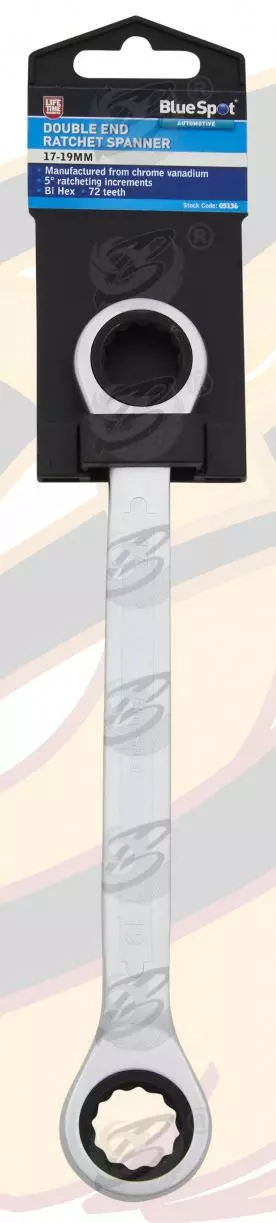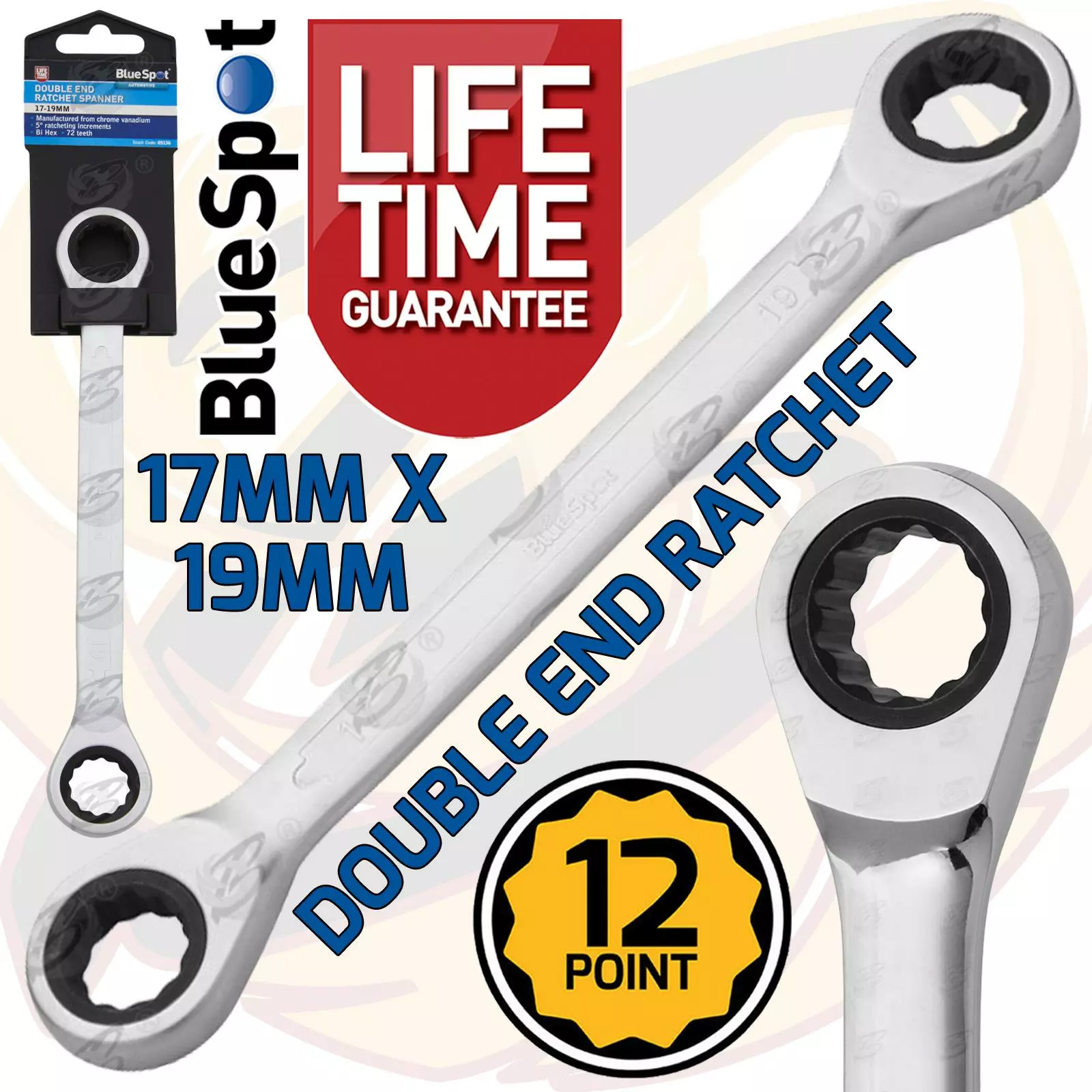 BlueSpot Ratchet Spanner 17mm X 19mm Double Ended Ratchet Spanner Wrench 72 Tooth 12Point