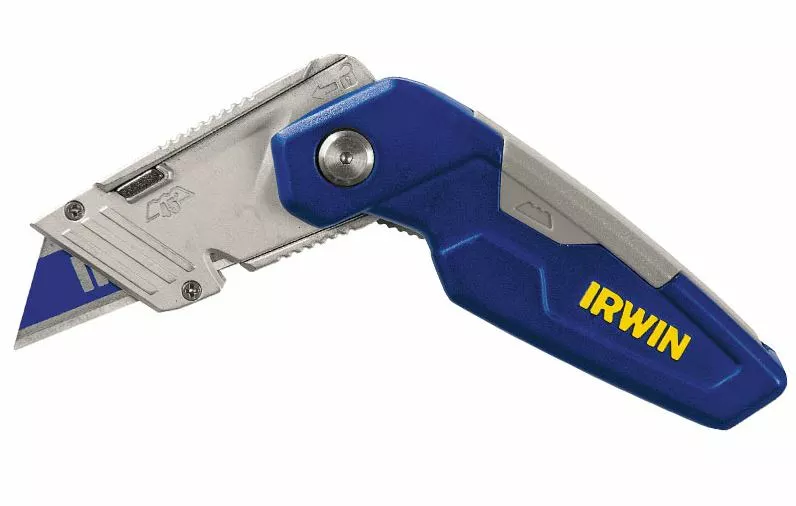 • The Irwin IRW10507695 Folding Trapezoid Knife has a quick change mechanism that allows for easy blade removal and reversal without opening.