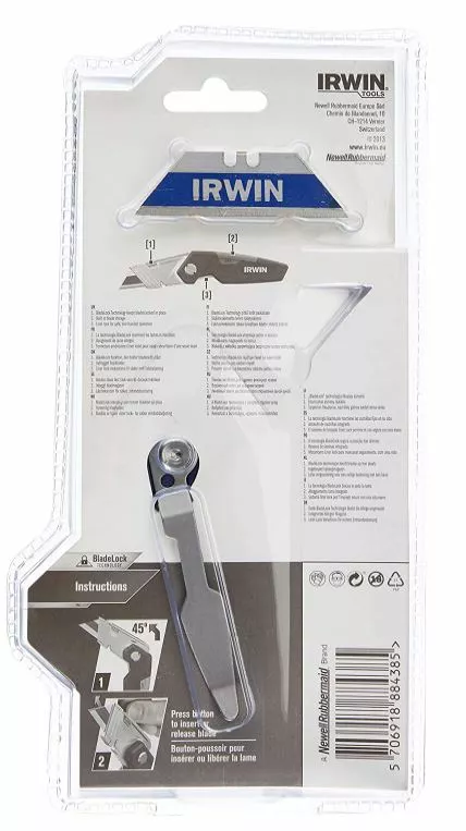• The 10507695 Irwin Folding Trapezoid Knife is supplied with 3 shatterproof Blue Blade Bi Metal Technology blades.