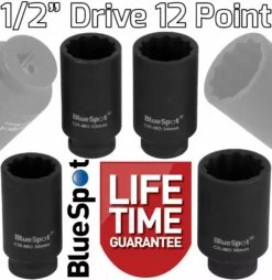 BlueSpot 12 Point Axle Hub Nut DEEP IMPACT Socket Set 1/2″Dr Thin Wall Drive Shaft Socket