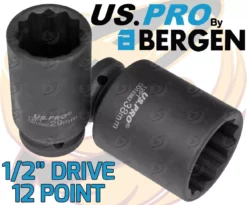 US PRO By BERGEN US PRO 12 Point Axle Hub Lug Nut DEEP IMPACT Socket Set 1/2″ Drive 29-38mm