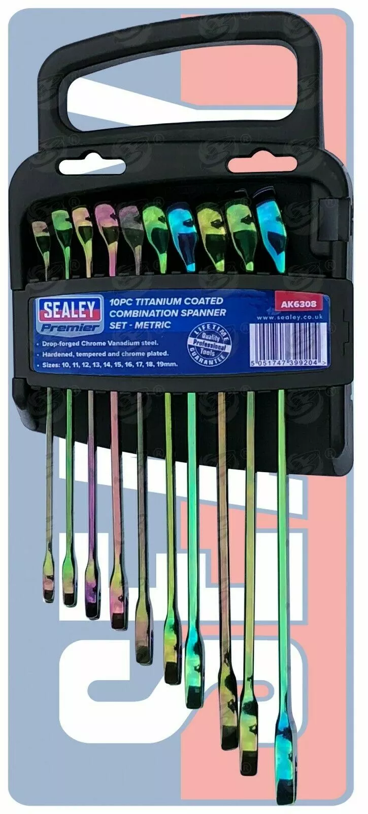 SEALEY 10 Piece TITANIUM COATED Combination Spanner Set 8mm – 19mm