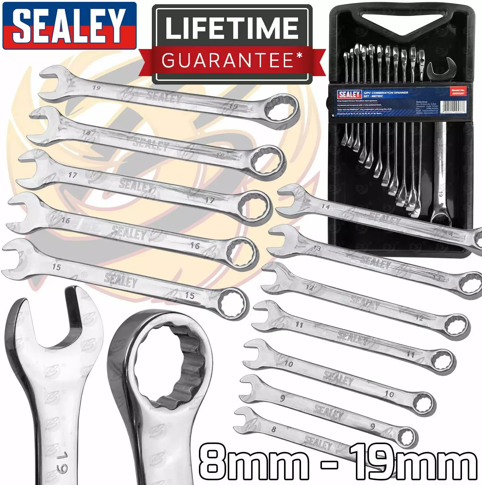 SEALEY 12 Piece Combination Spanner Set 8mm – 19mm