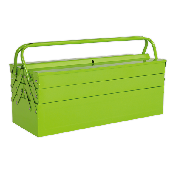 - Traditional cantilever design with four tool trays and central tool storage area.