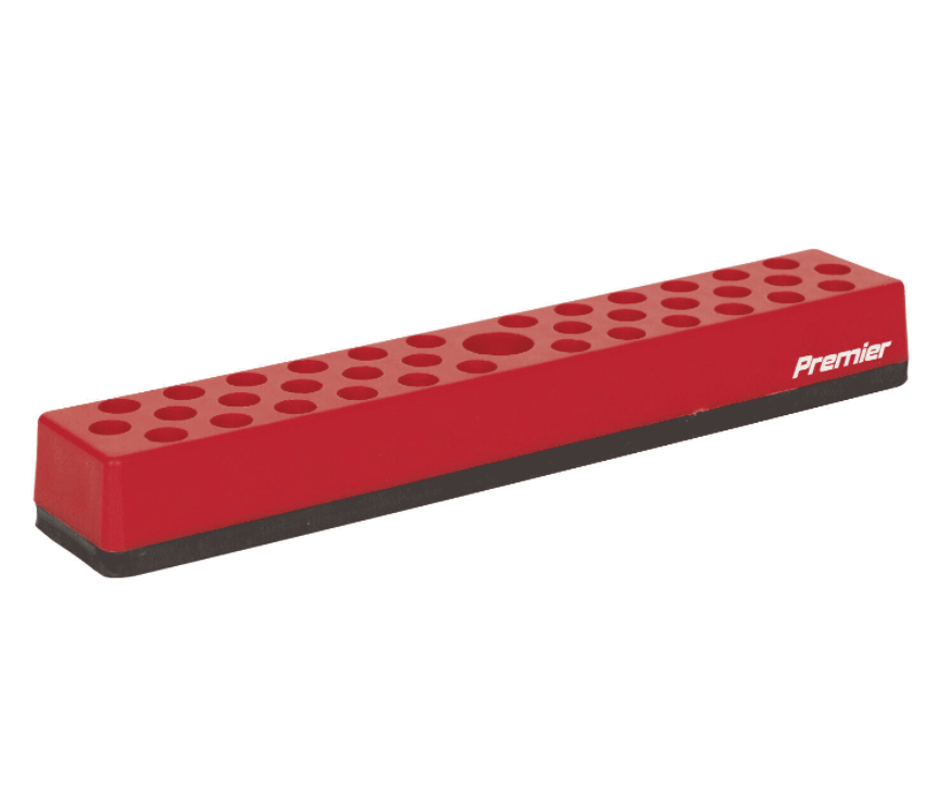 - Composite holder with strong magnetic base helps maintain a tidy workstation.