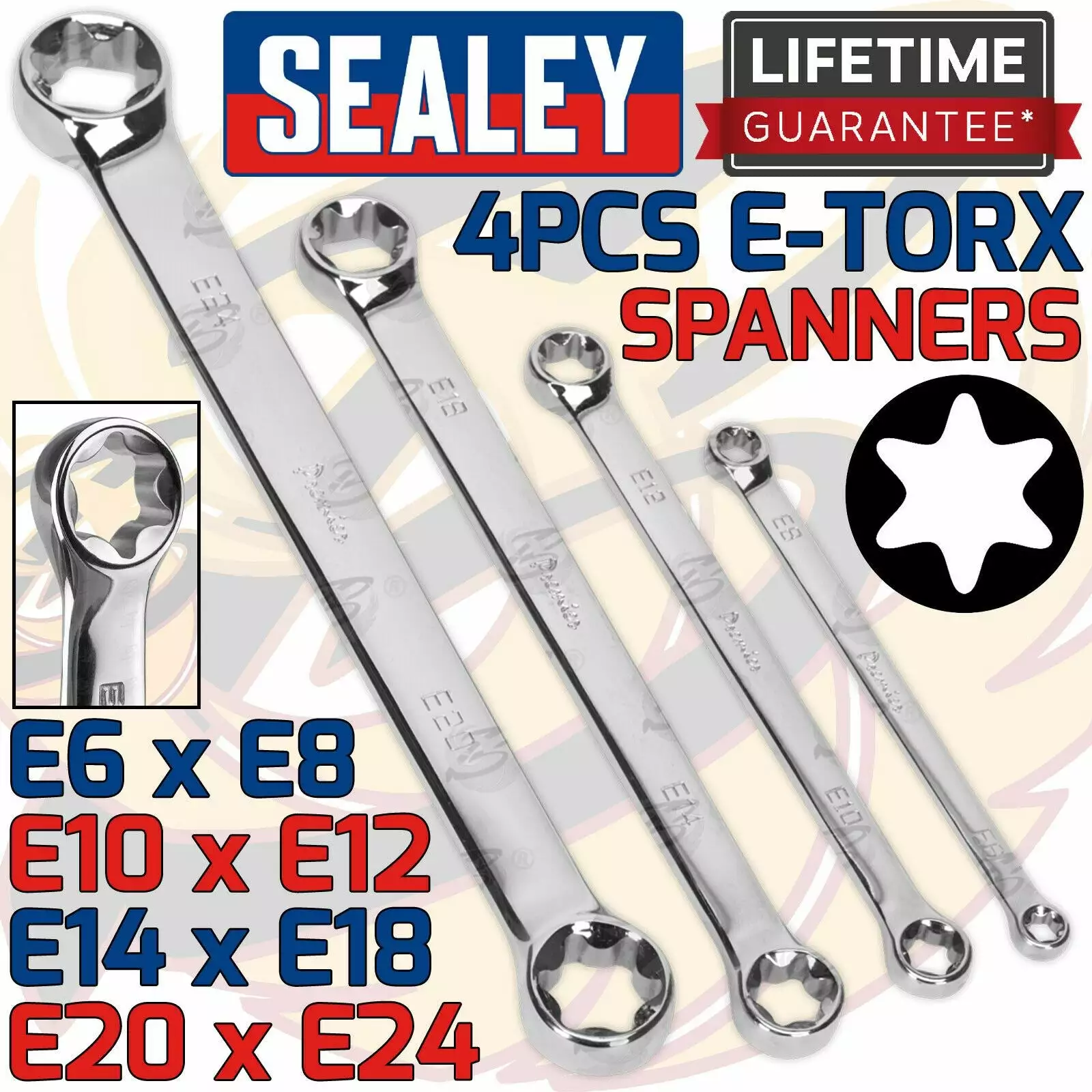 Be the first to review “SEALEY E-TORX Spanners 4pc Star Torx Double Box Wrench Set Female Torx E6 To E24” Cancel reply