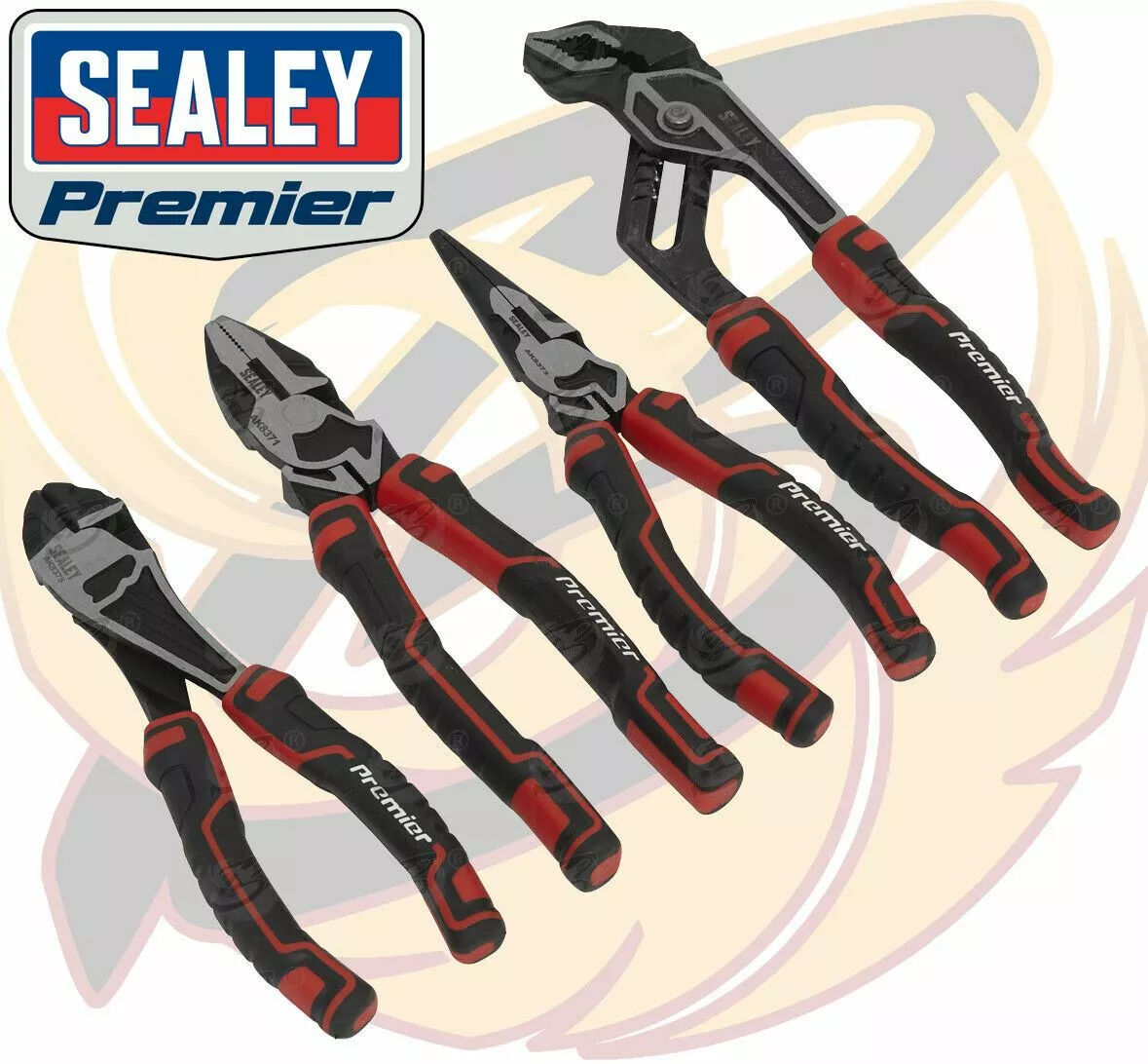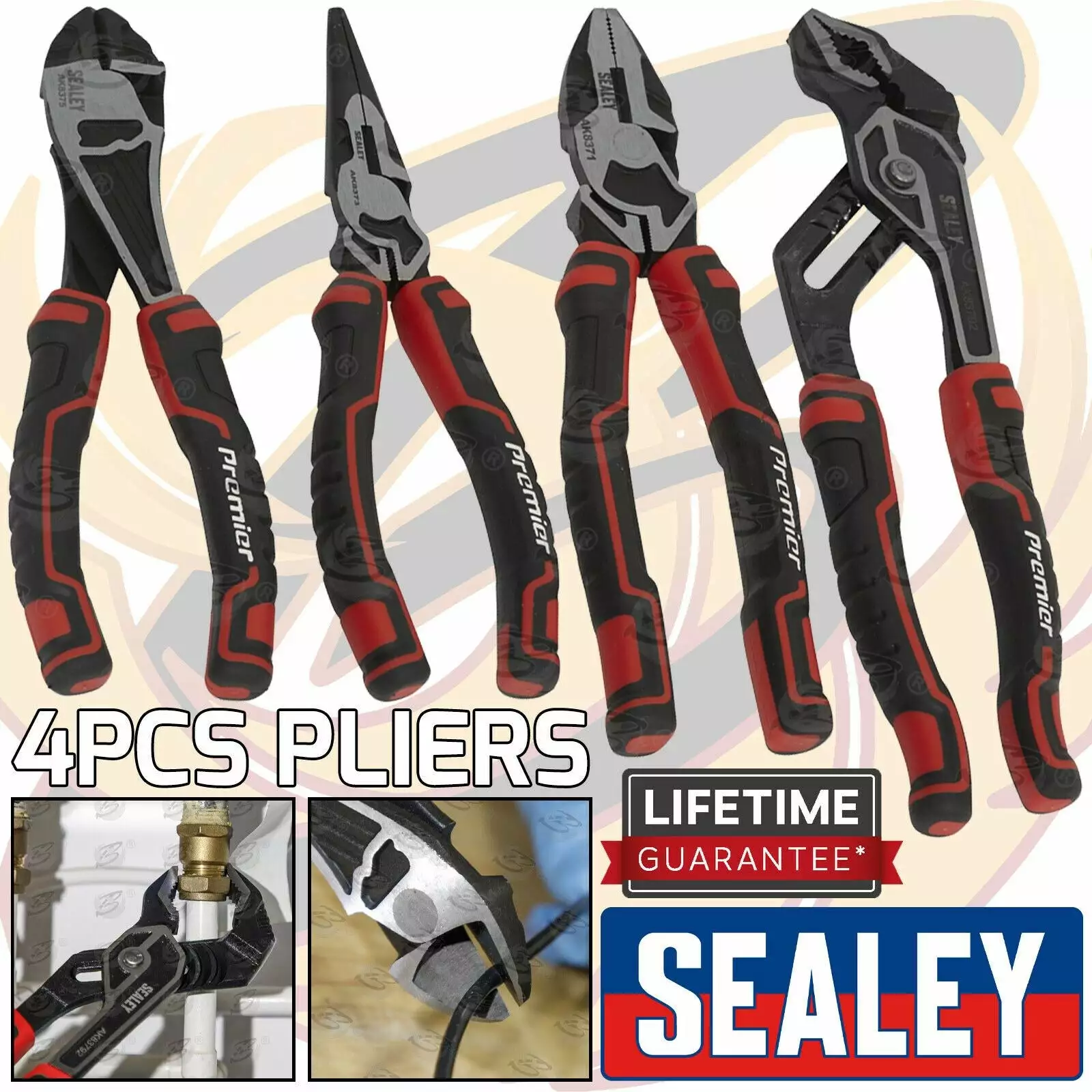 SEALEY Pliers Set 4pcs High Leverage Plier Set Cutters Combi Long Nose Plier Set