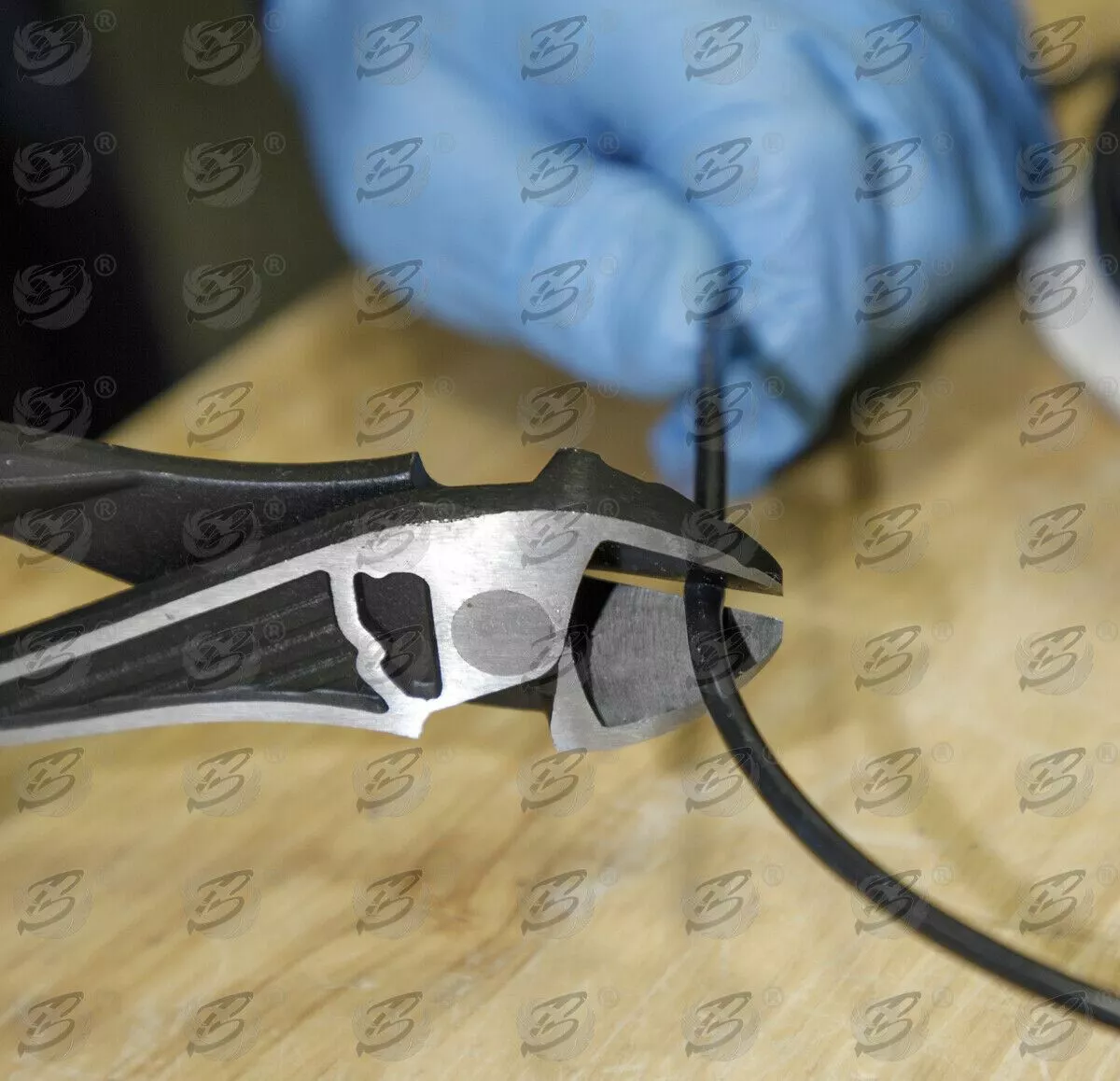 - Serrated jaws and precision ground cutting edges, induction-hardened 55-65 HRC for cutting hard and soft wires