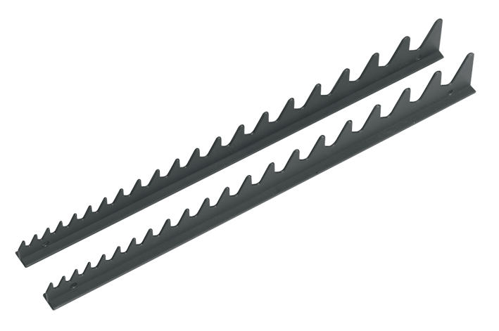 Durable composite shark’s teeth wrench rack helps maintain an organised top chest/roll cab.