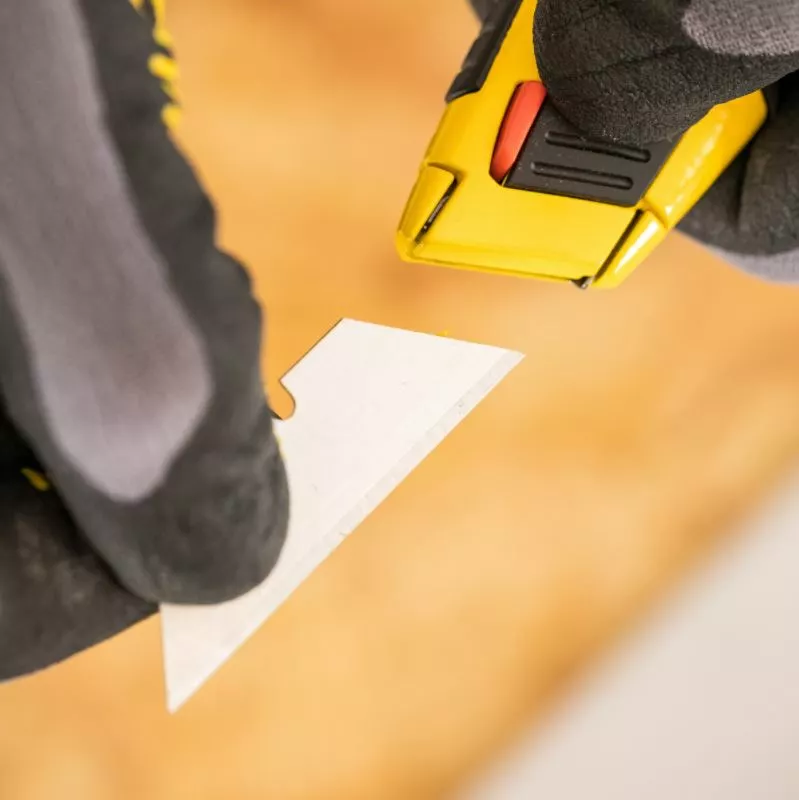 - In addition, this blade knife has a thumb pad for comfort and the ergonomic cutting angle makes it ideal for flooring applications.