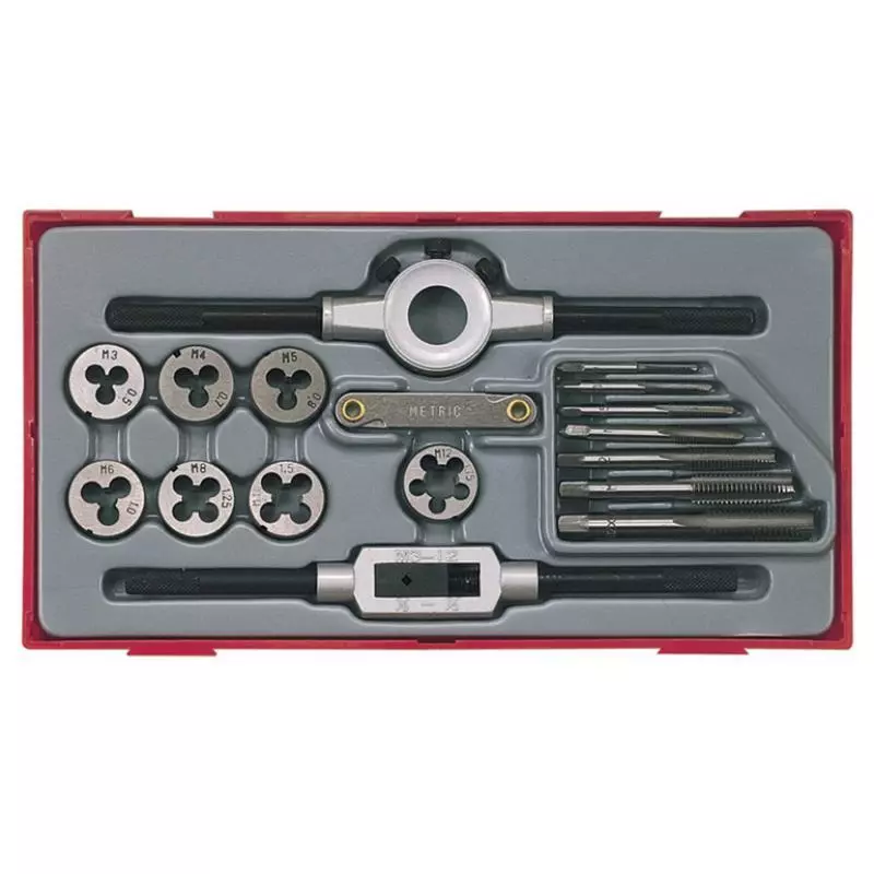 - The rethreading tap and die set is supplied in a Teng Tools TC tray with removable lid.