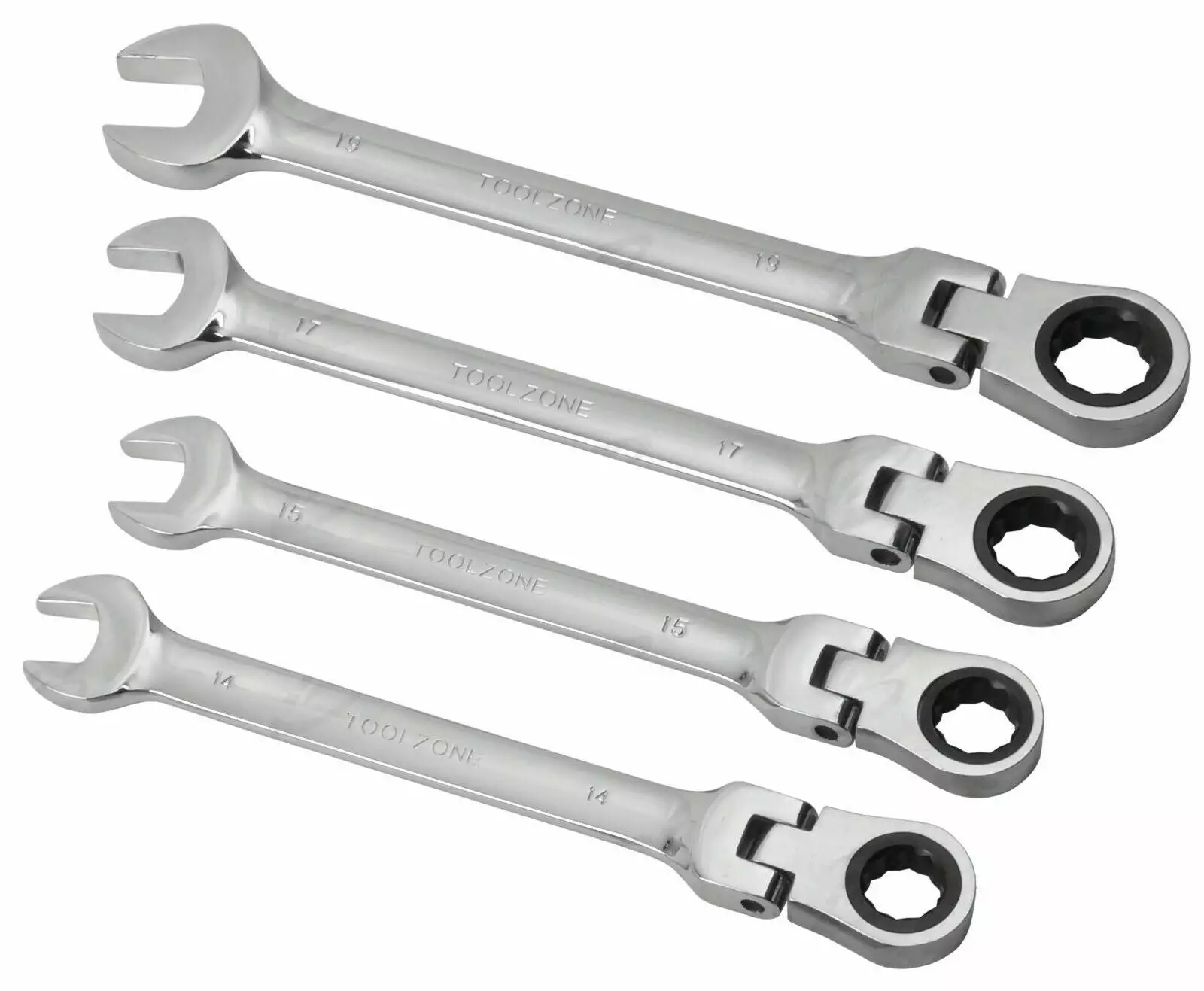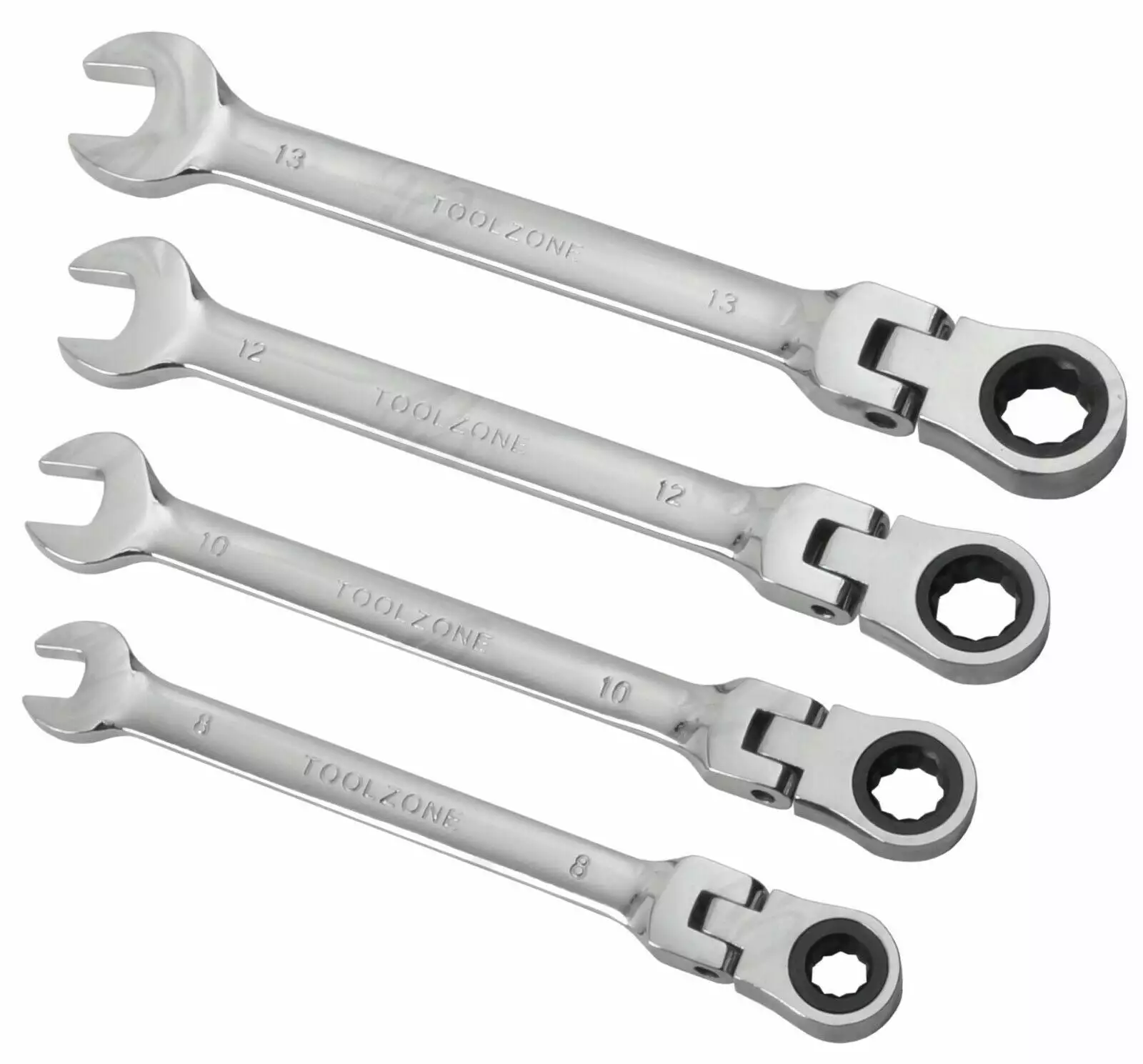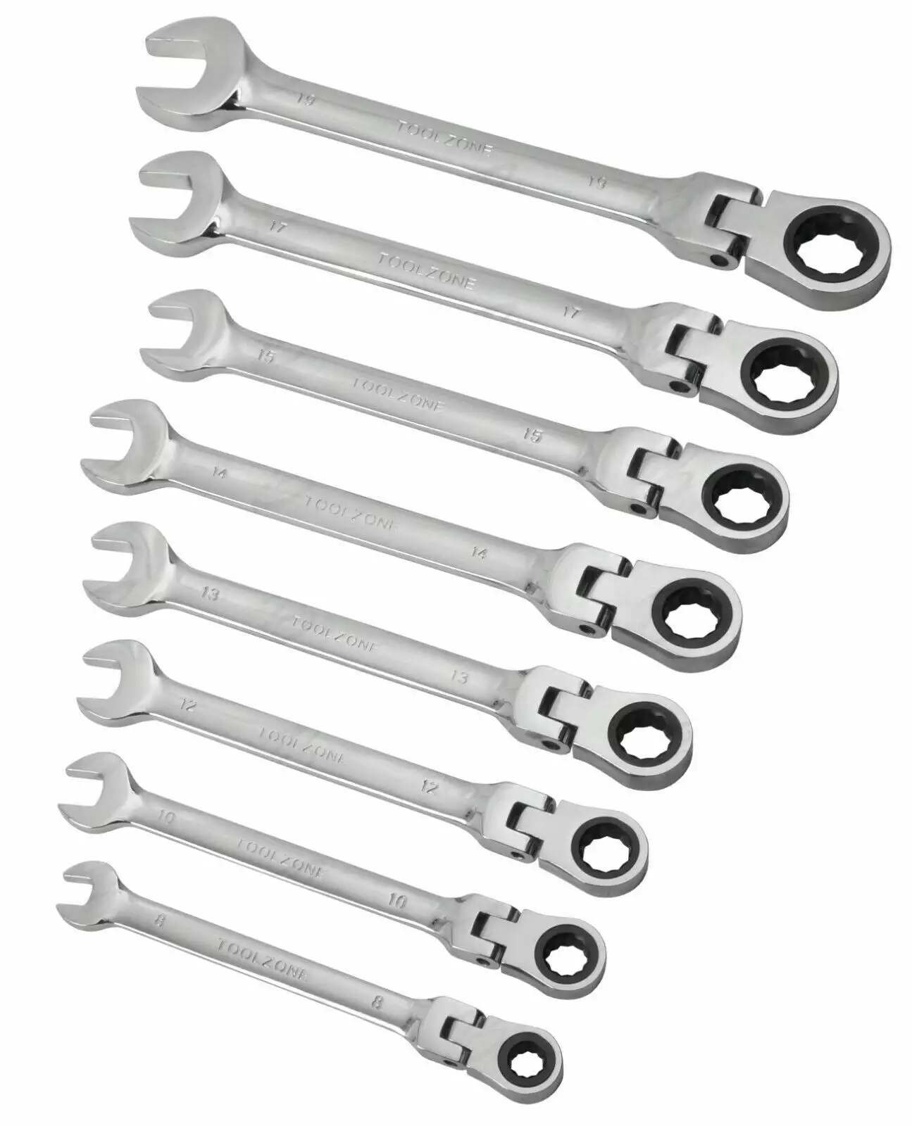 TOOLZONE 8 Piece FLEXI HEAD RATCHET Combination Spanner Set 8mm – 19mm
