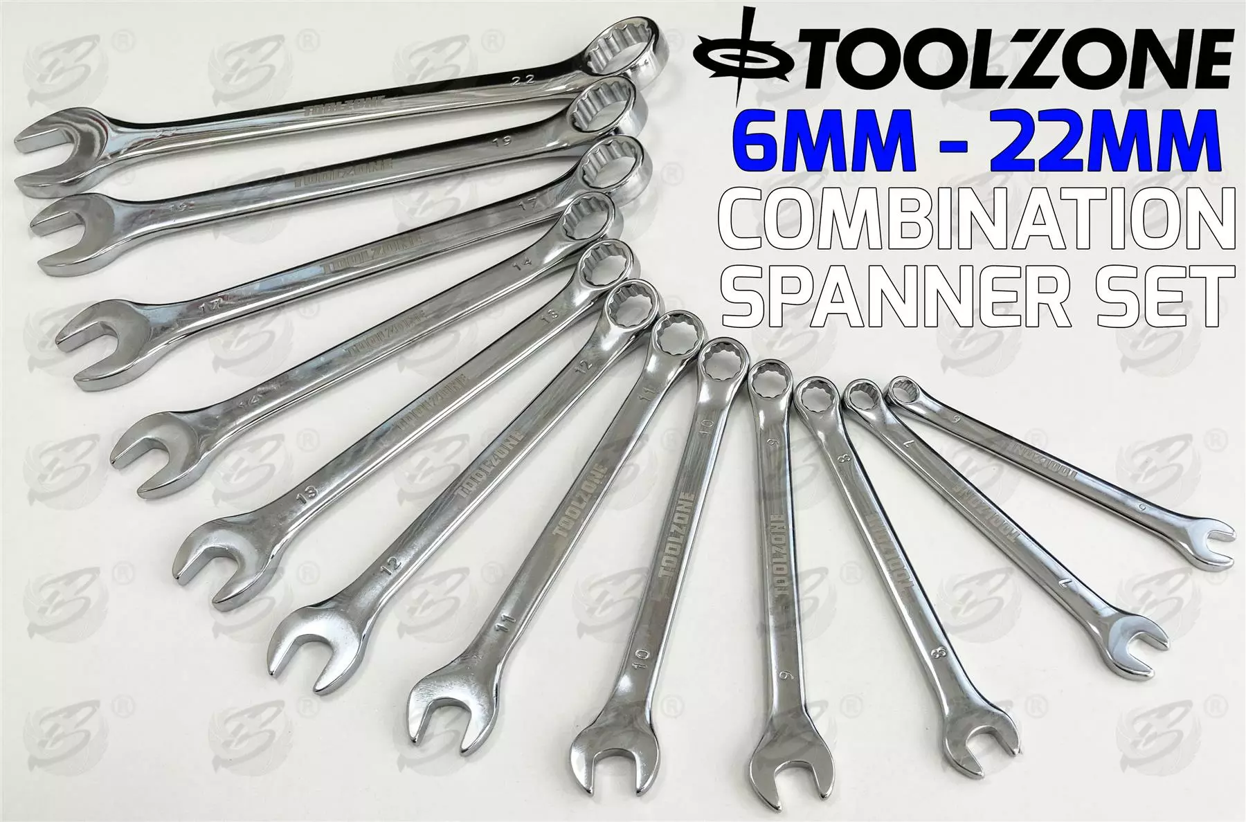 Toolzone Combination Spanner Set 12pc 6 – 22mm Combi Wrench Set Open & Ring End Spanner