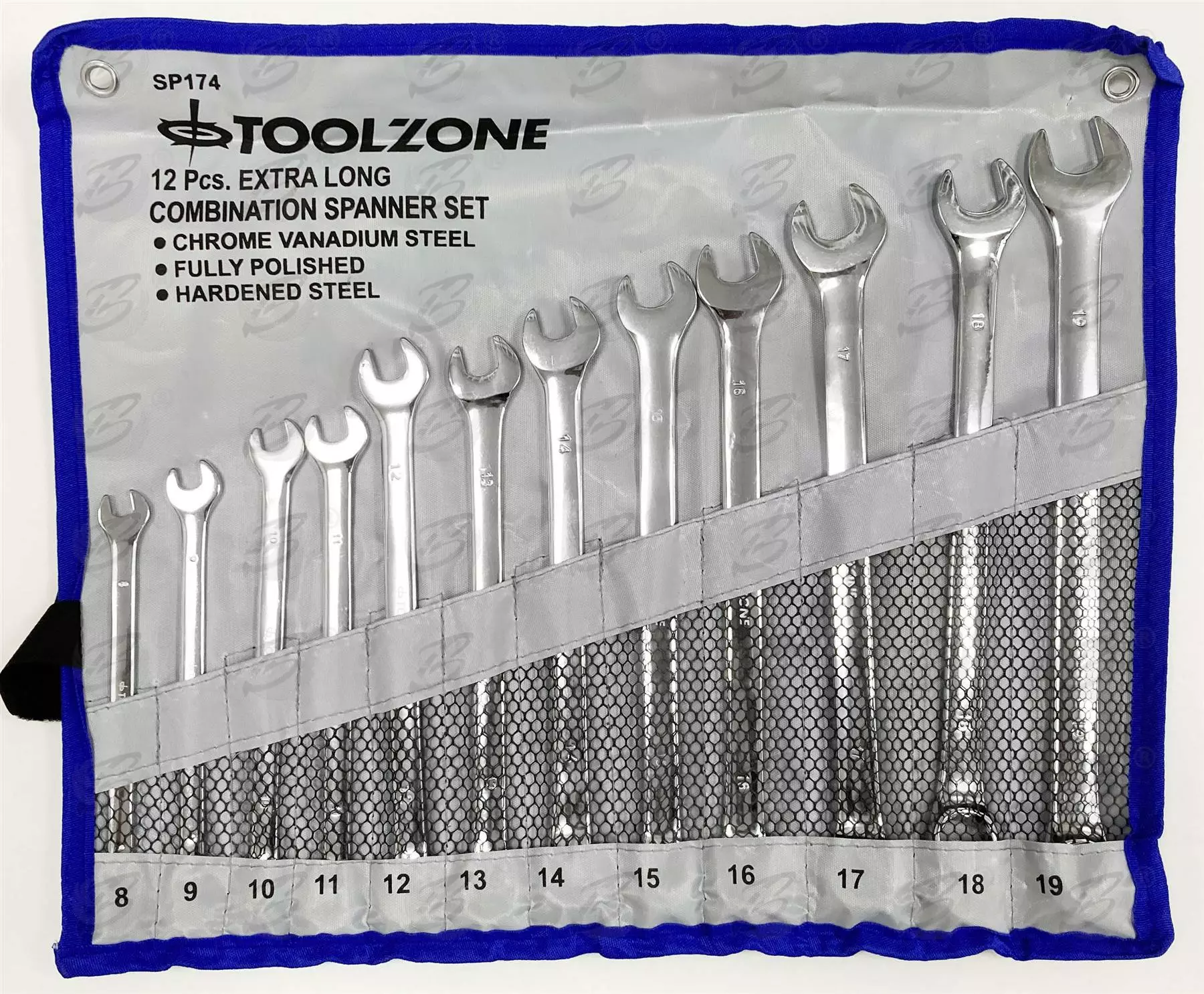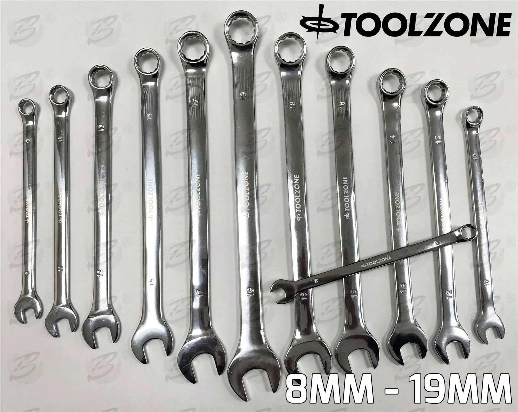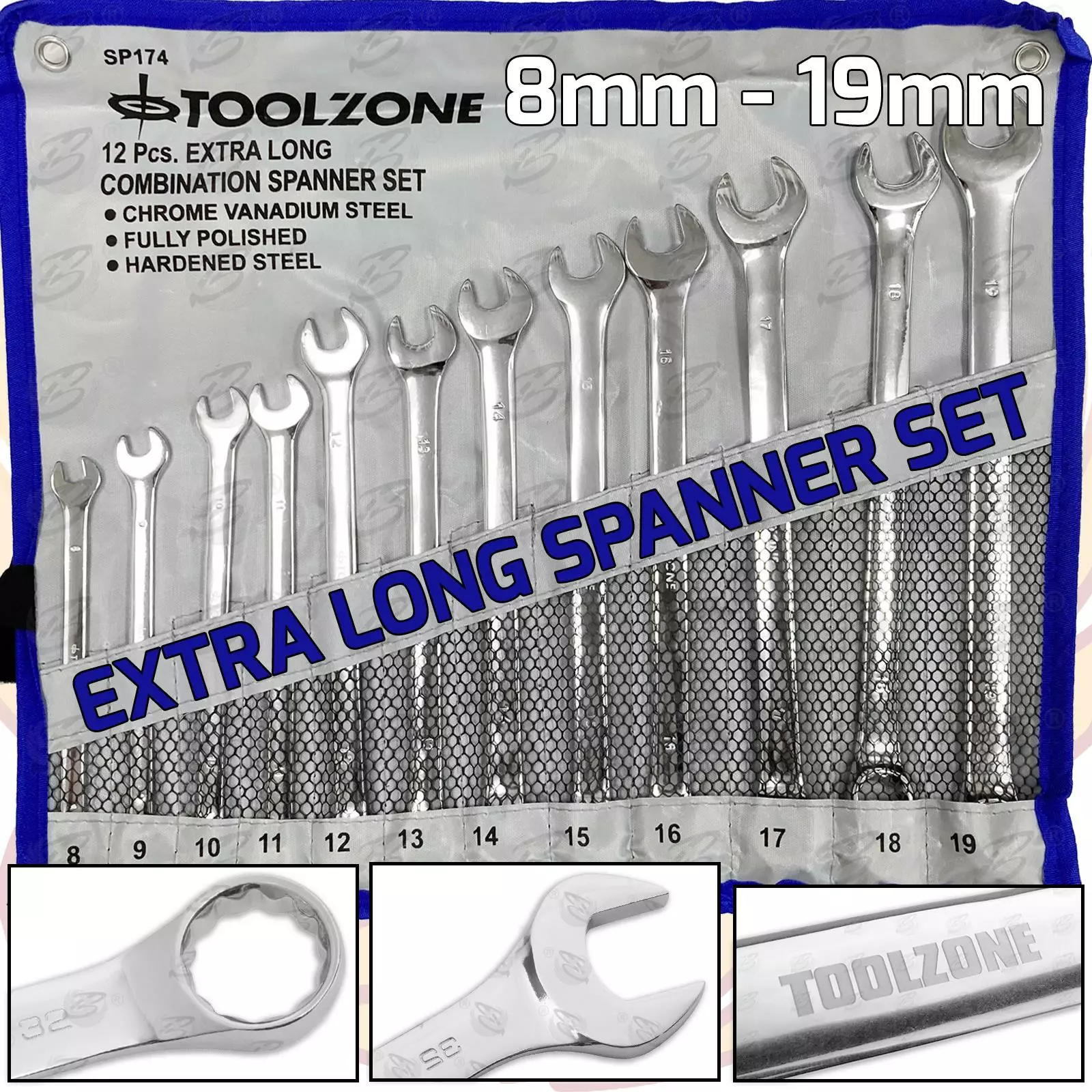 Toolzone EXTRA LONG Spanners 12pc Long Reach Combination Wrench Spanner Set 8-19mm Wrench