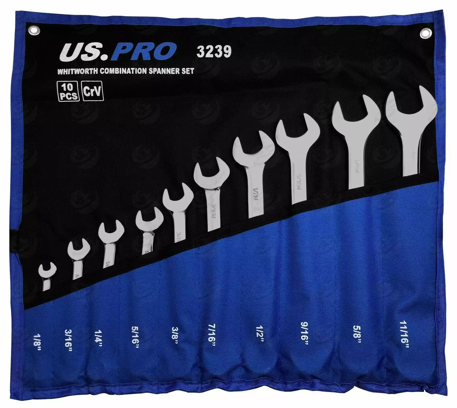 US PRO By BERGEN 10 Piece WHITWORTH Combination Spanner Set 1/8″ – 11/16″