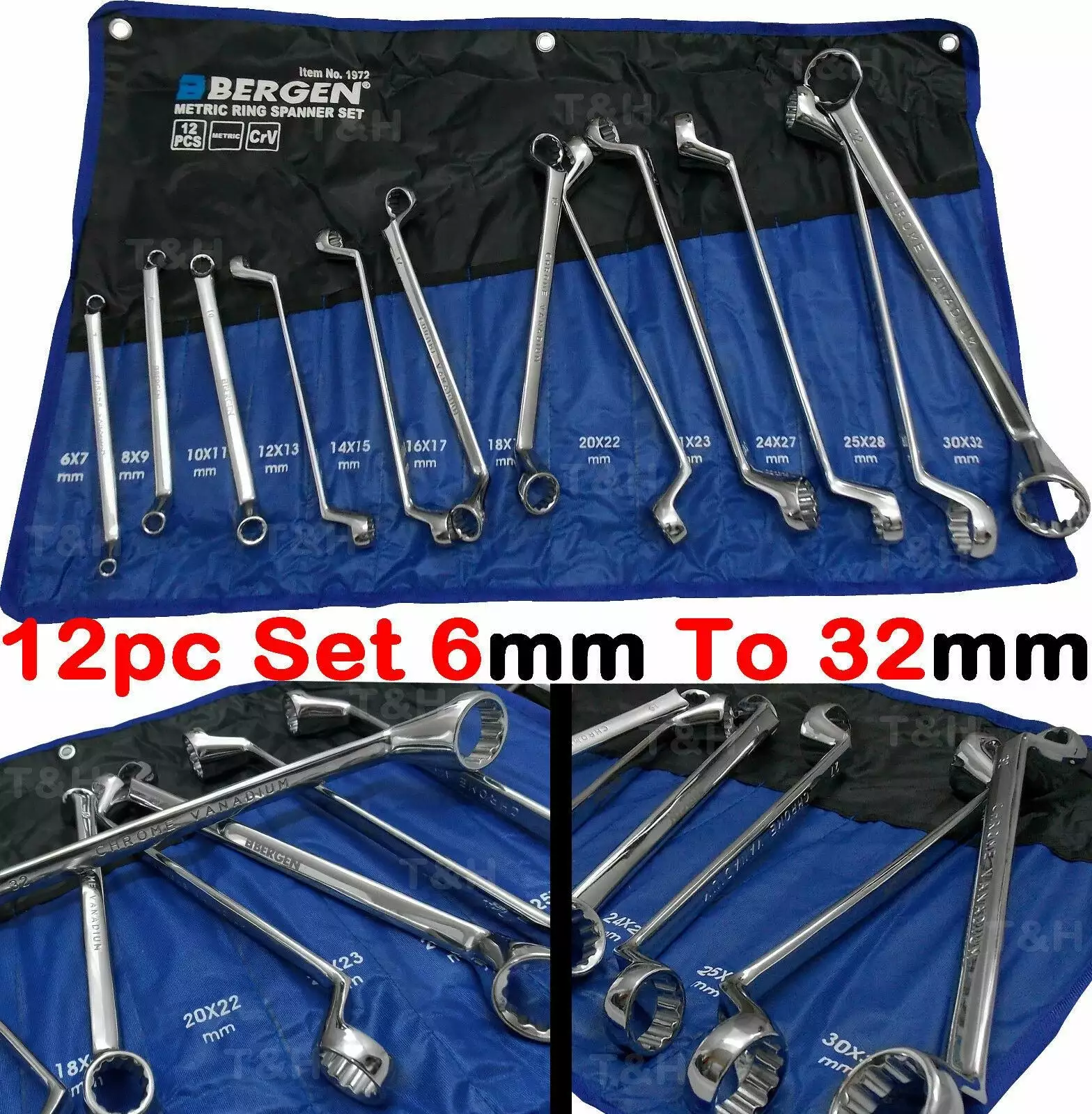 US PRO By BERGEN 12 Piece 12 Point OFFSET DOUBLE RING Spanner Set 6mm – 32mm