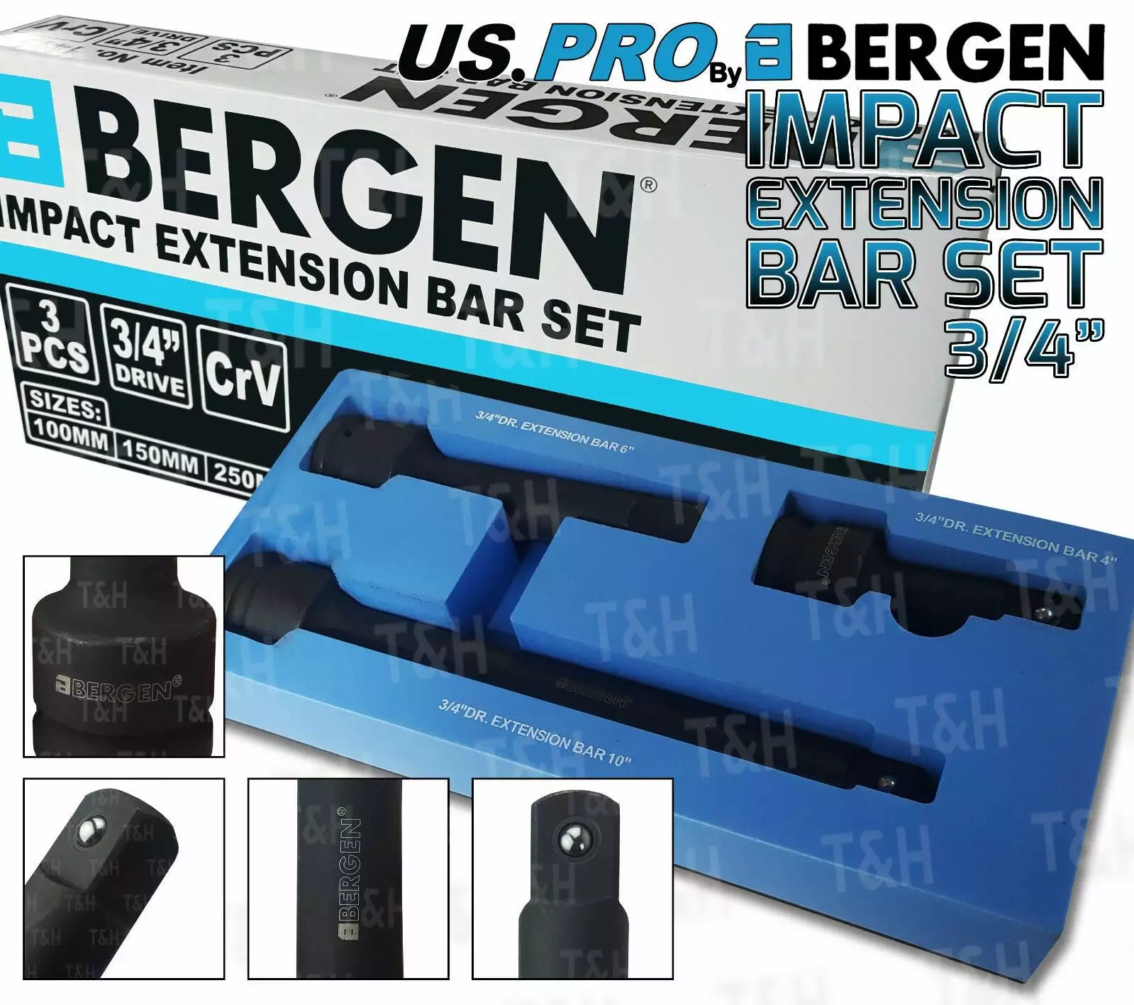US PRO By BERGEN 3/4″ Drive IMPACT Extension Bar Set 100mm – 250mm
