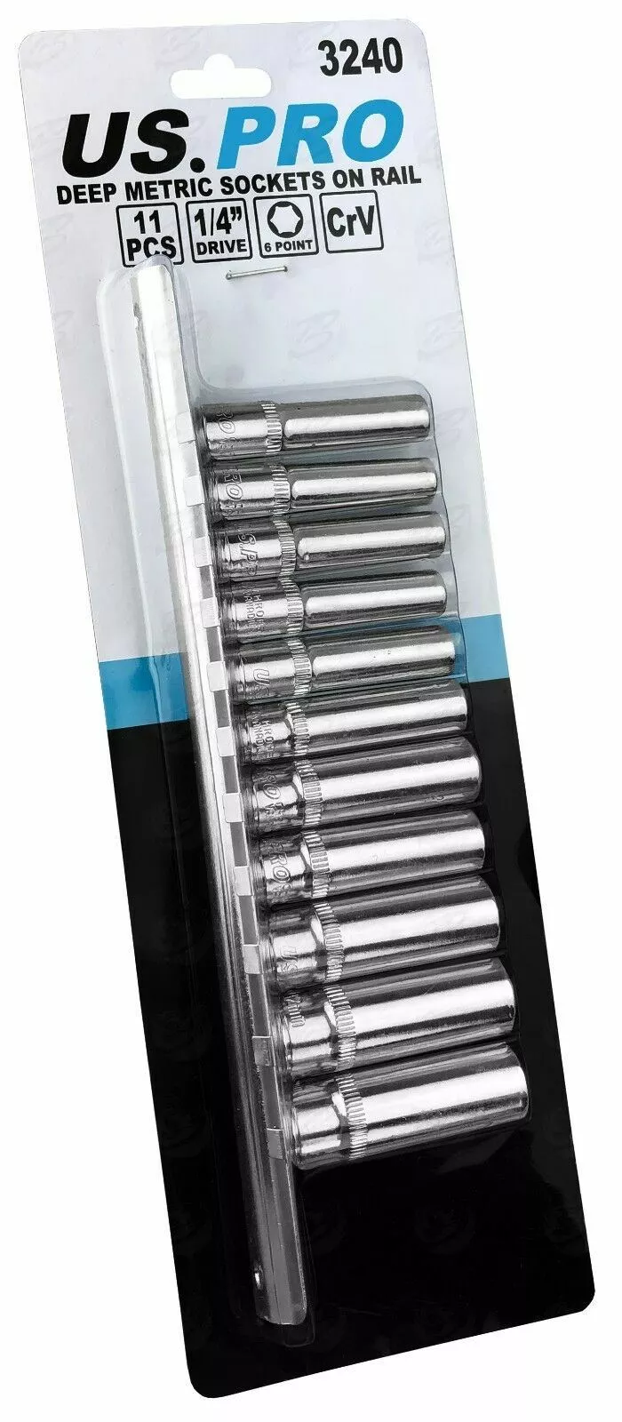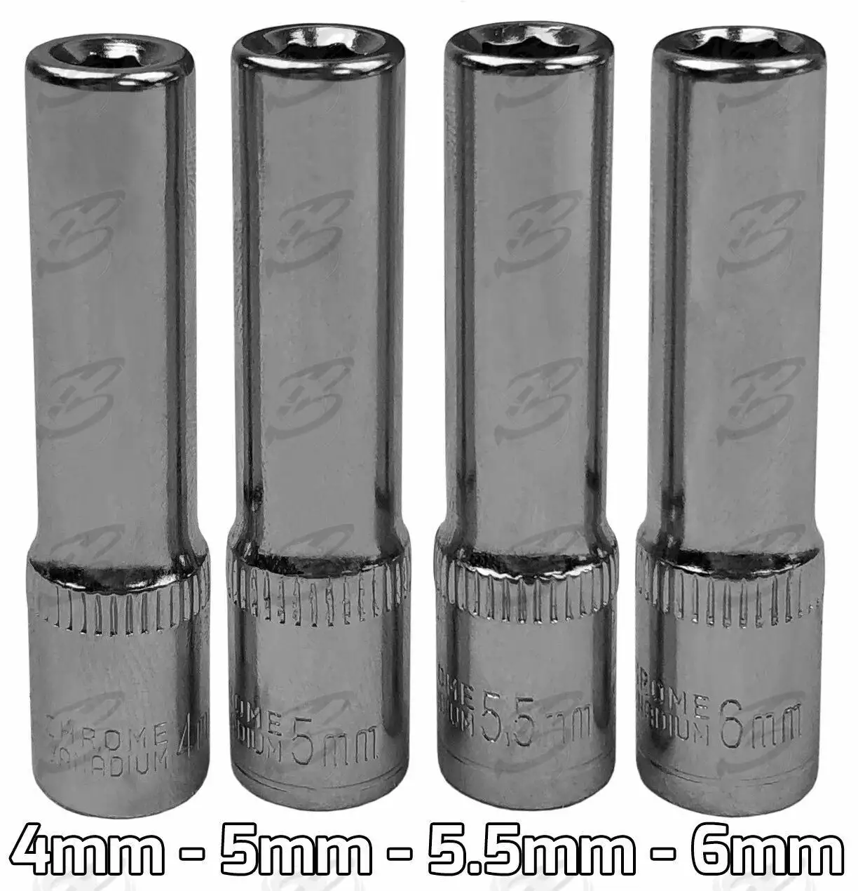 US PRO By BERGEN BERGEN 1/4″ INCH Drive Deep Socket Set Long Reach Sockets 4mm-13mm 11pc 6PT Hex
