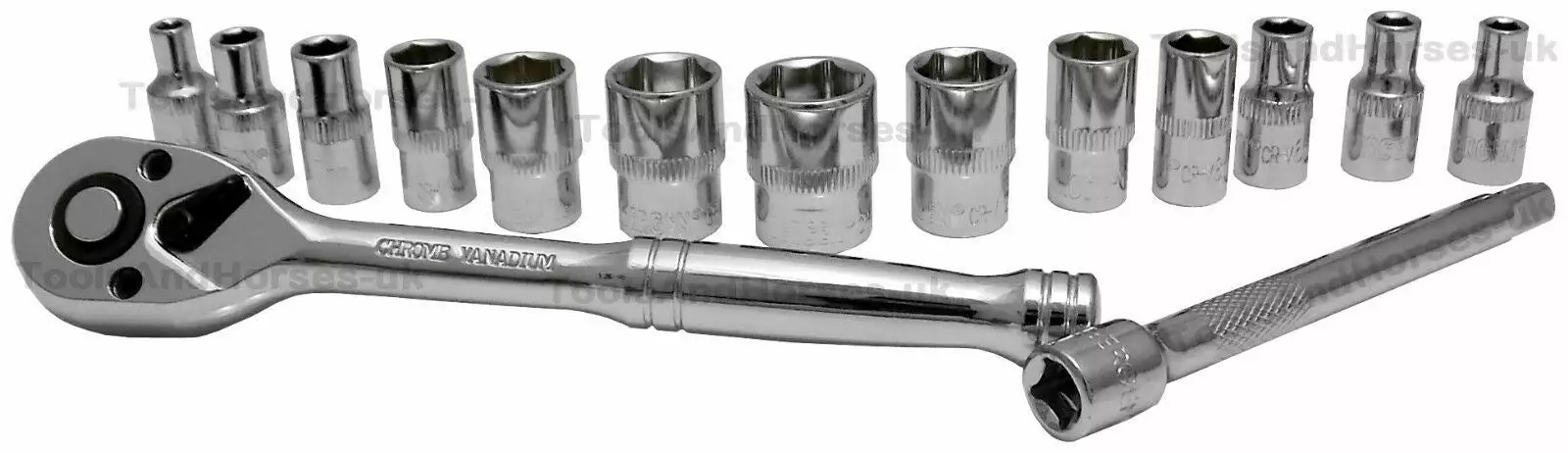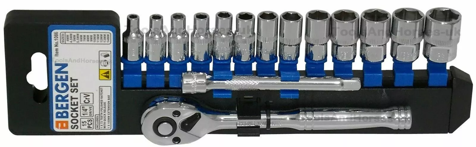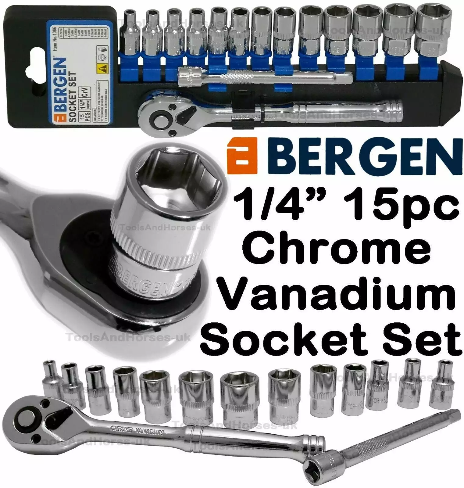 US PRO By BERGEN BERGEN 1/4″ Socket Set 15pc 72T Ratchet Extension Bar & Socket Tool Set 4mm-14mm