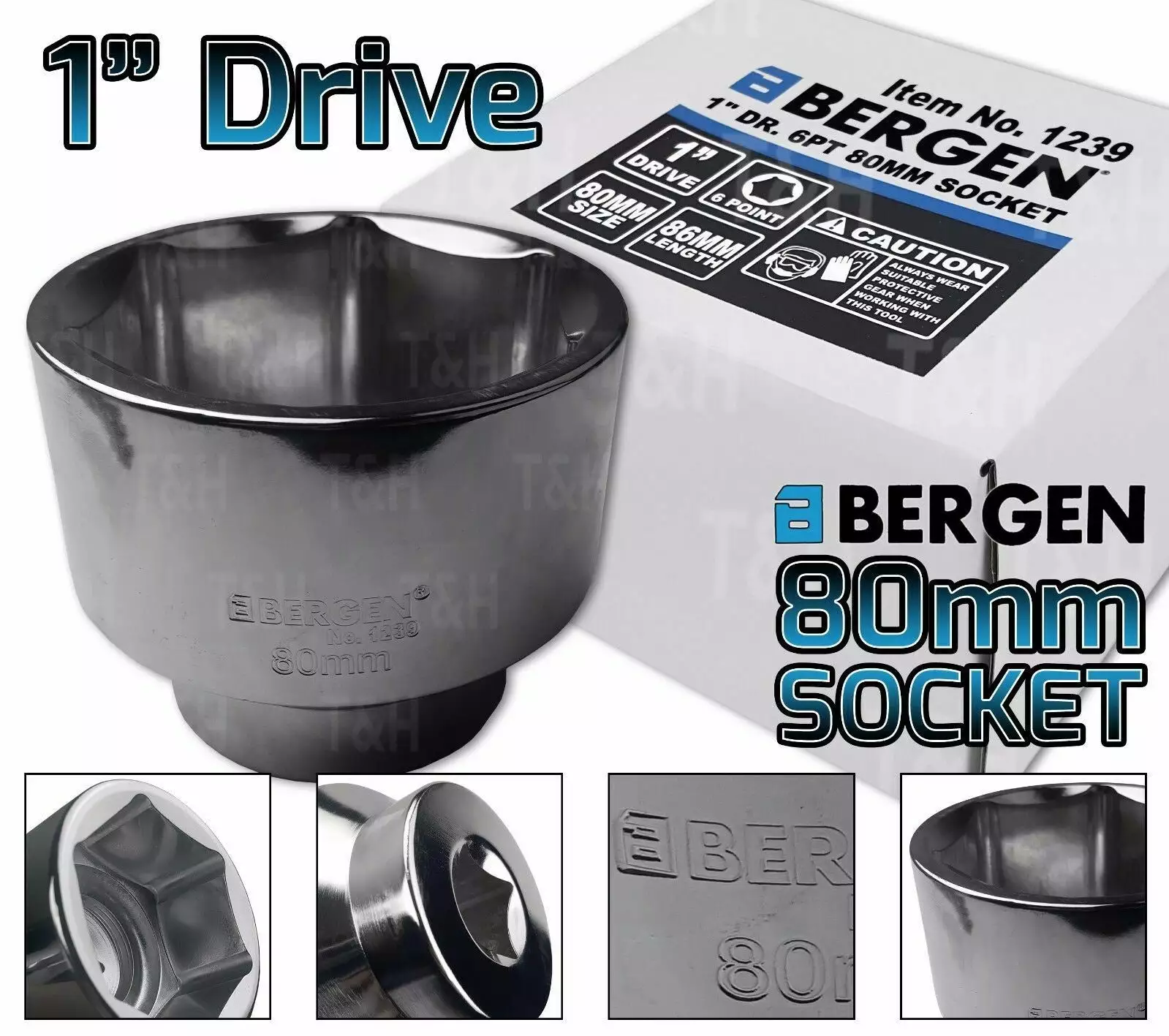 US PRO By BERGEN BERGEN 1″ Inch Shallow Socket 80mm Shallow Sockets 6 Point