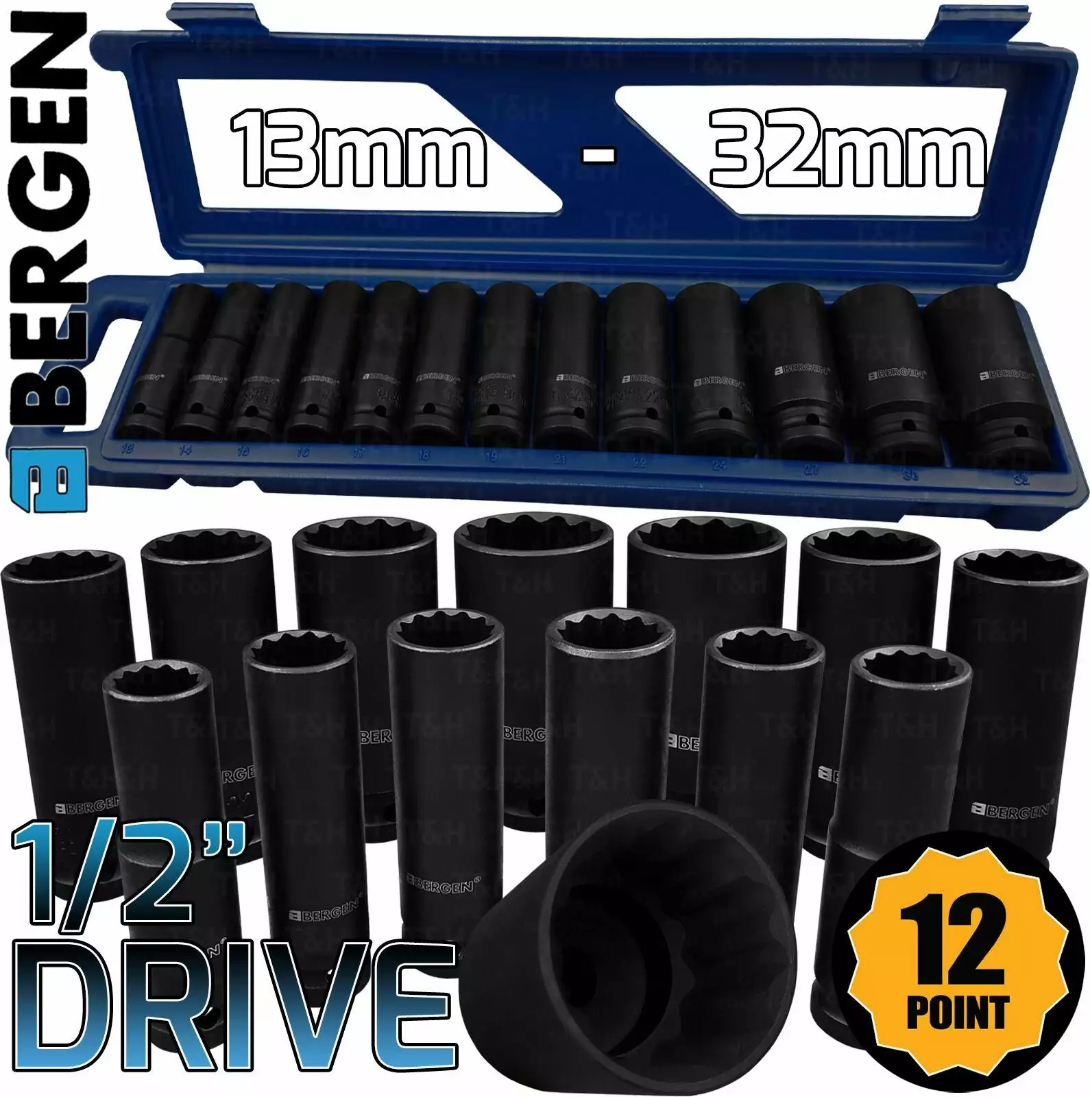US PRO By BERGEN BERGEN 12 Point DEEP IMPACT Socket Set 1/2″ Drive Long Reach Impact Sockets 13pc
