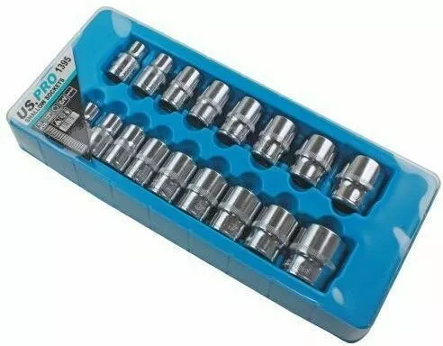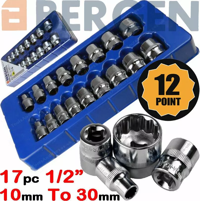 US PRO By BERGEN BERGEN 12 Point Socket Set 1/2″ Drive Double Hex Shallow Sockets Tool Set 17pc