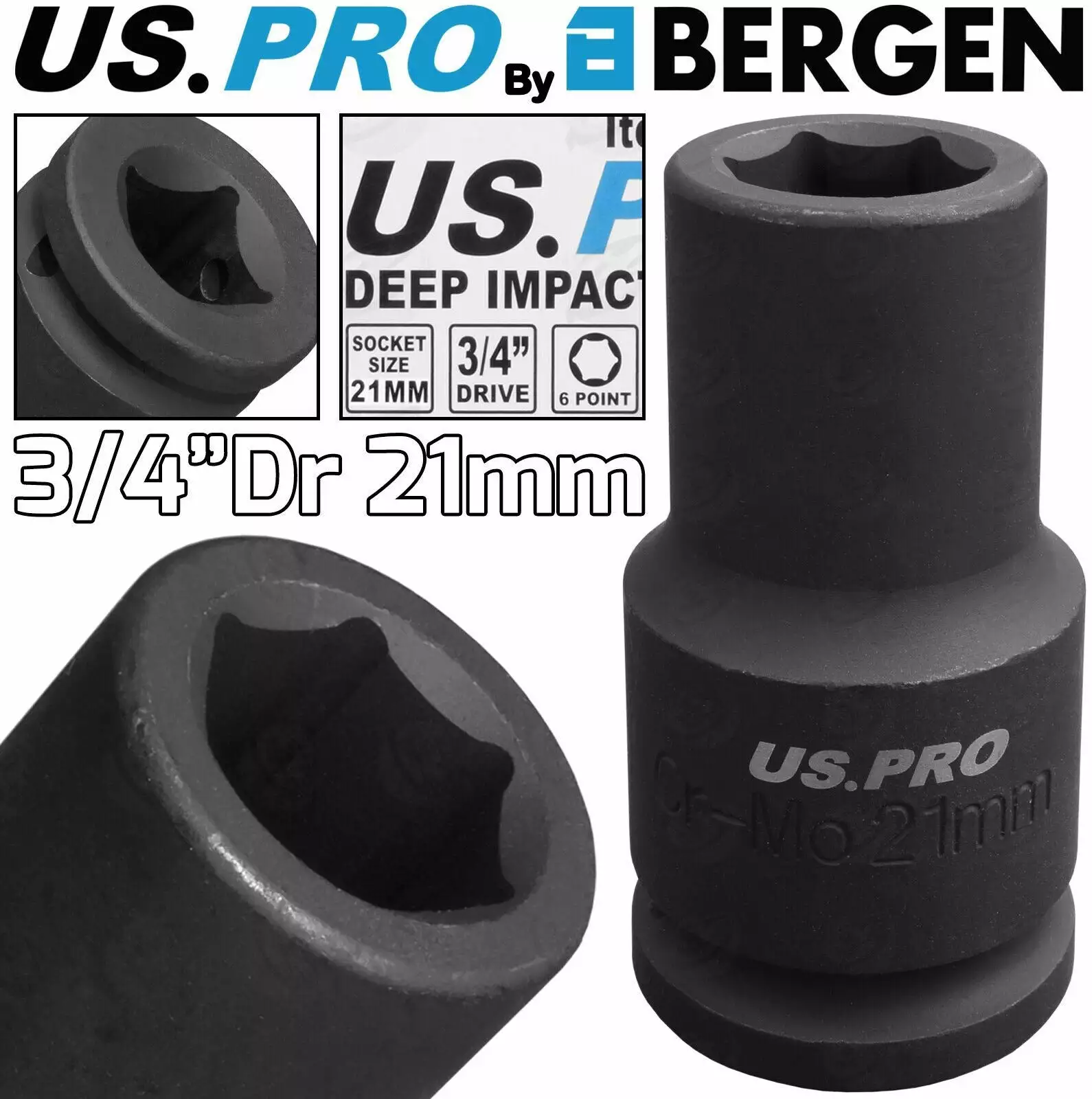 US PRO By BERGEN BERGEN 21mm 3/4″ Dr DEEP IMPACT SOCKET 6 Point HEX Long Reach IMPACT SOCKET HD