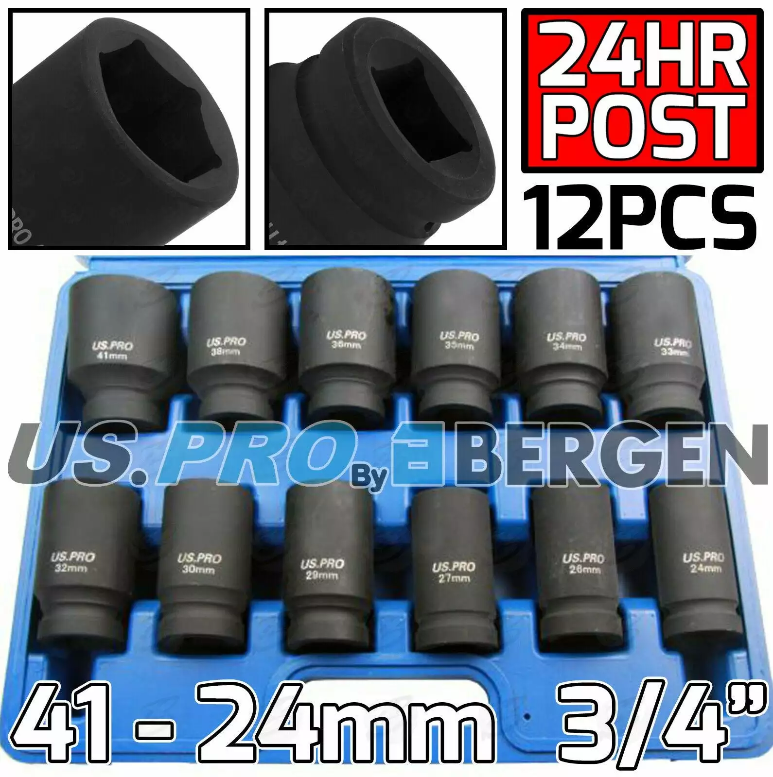 - PROFESSIONAL QUALITY 12pc 3/4″ Inch Drive DEEP IMPACT Socket Set 24mm To 41mm