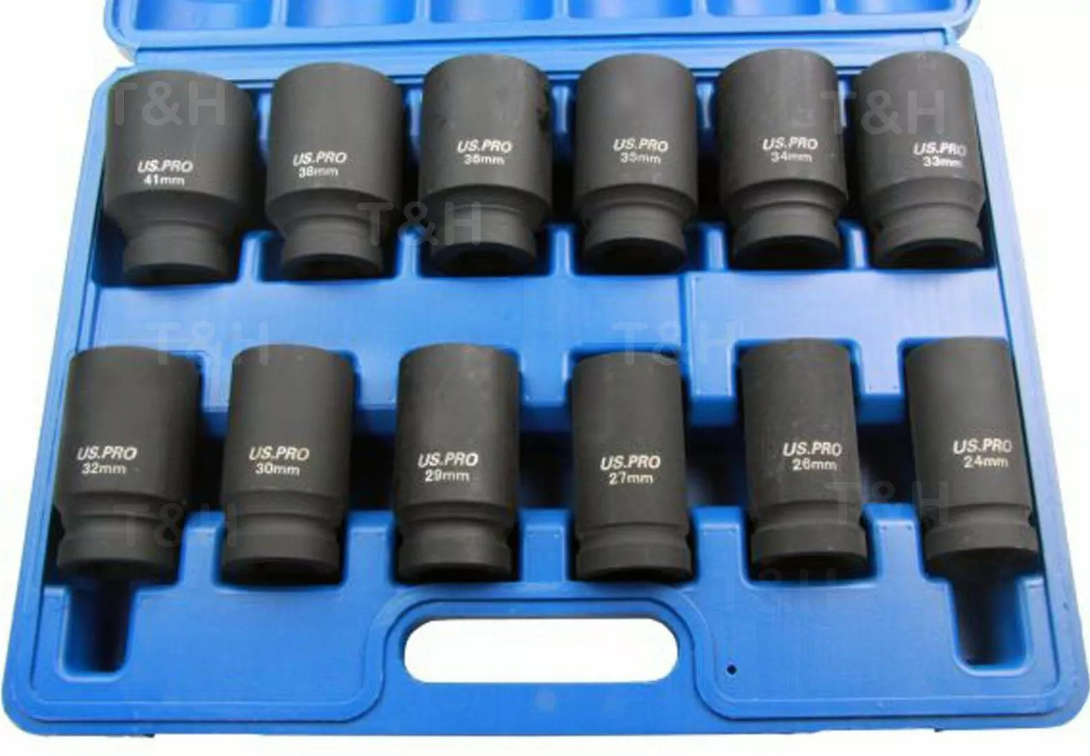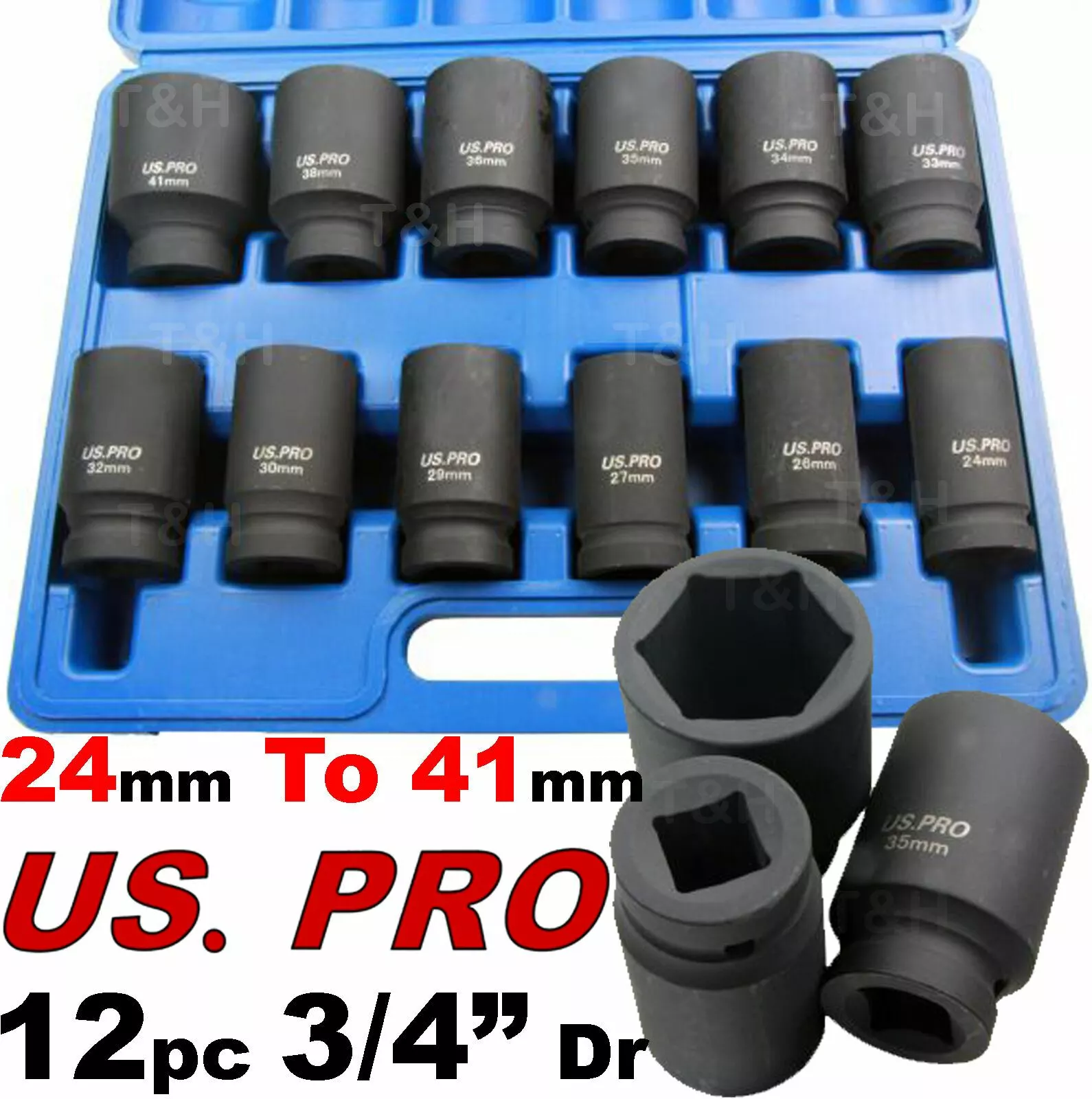 US PRO By BERGEN BERGEN 3/4″Inch DRIVE DEEP IMPACT Socket Set 24-41mm HGV Long Reach Impact Socke