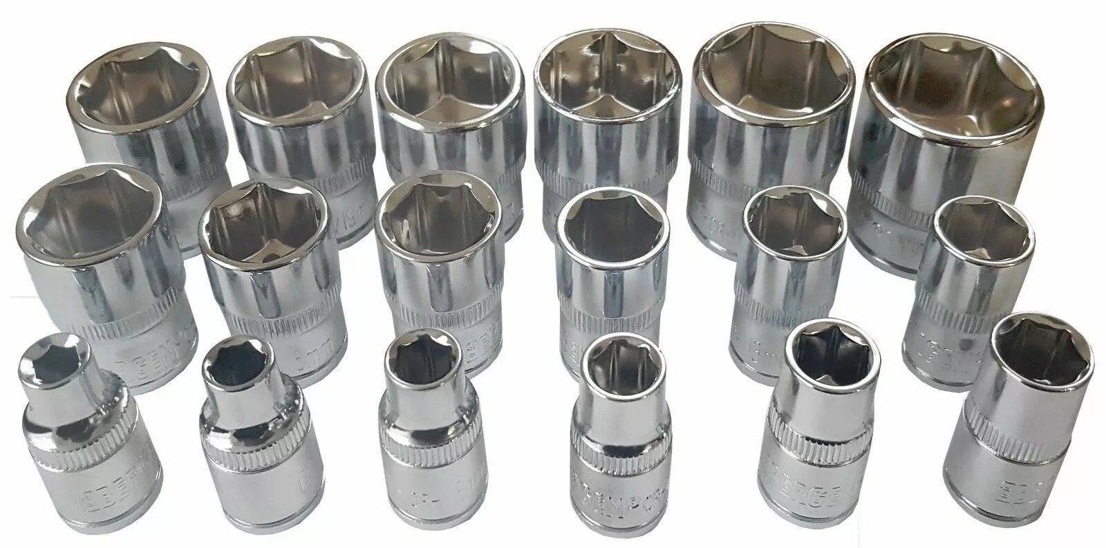 - Standard Length (Shallow) Sockets : 6mm – 7mm – 8mm – 9mm – 10mm – 11mm – 12mm – 13mm – 14mm – 16mm – 17mm – 18mm – 19mm – 20mm – 21mm – 22mm – 24mm