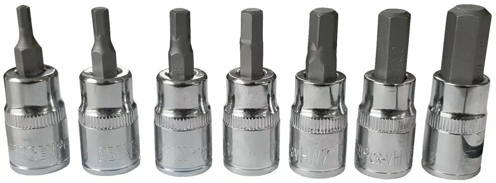 - Hex Bit Sockets : H3 – H4 – H5 – H6 – H7 – H8 – 1H0