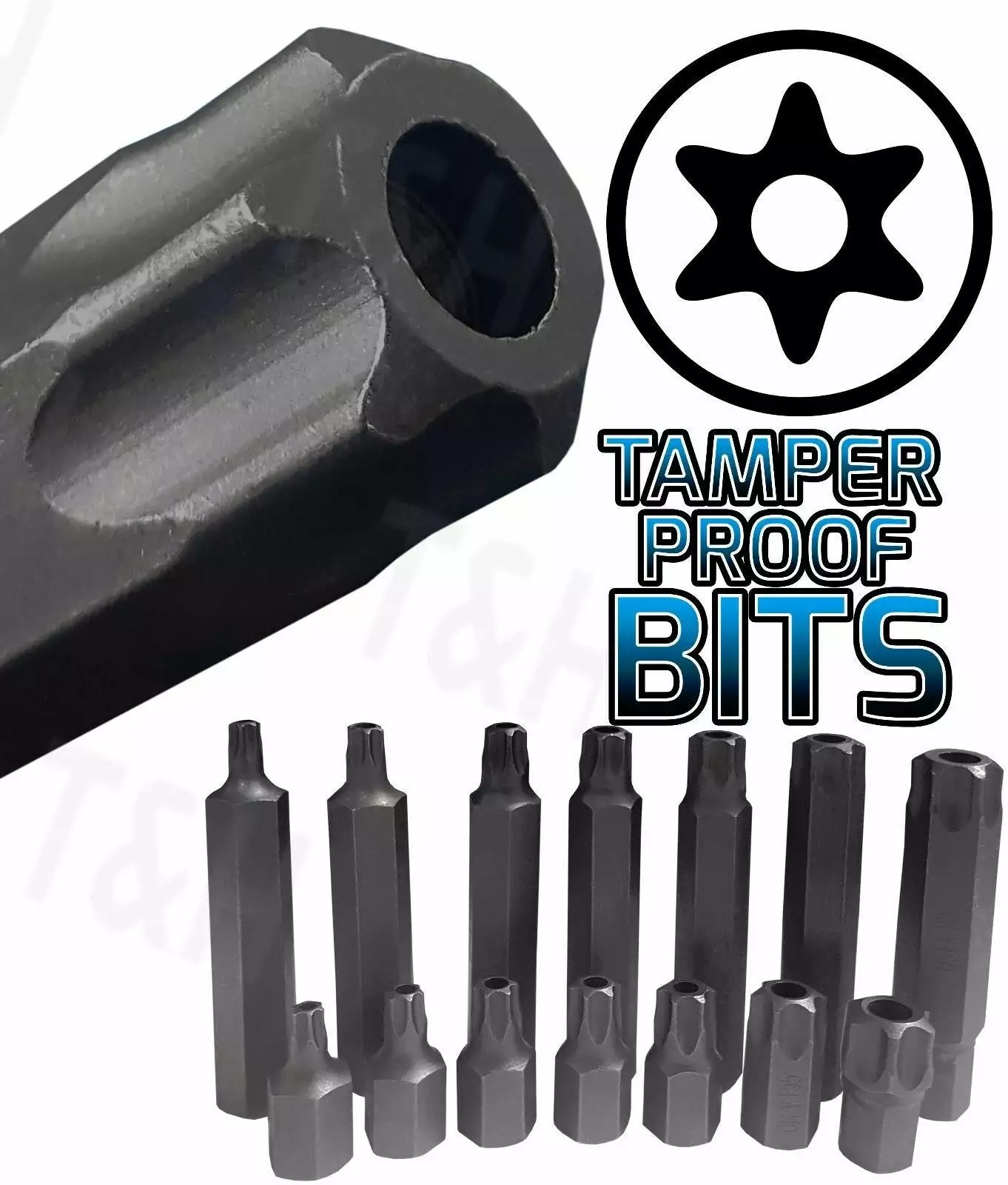 - 30mm Long Tamperproof Torx Bits : T20 – T25 – T30 – T40 – T45 – T50 – T55 – T60