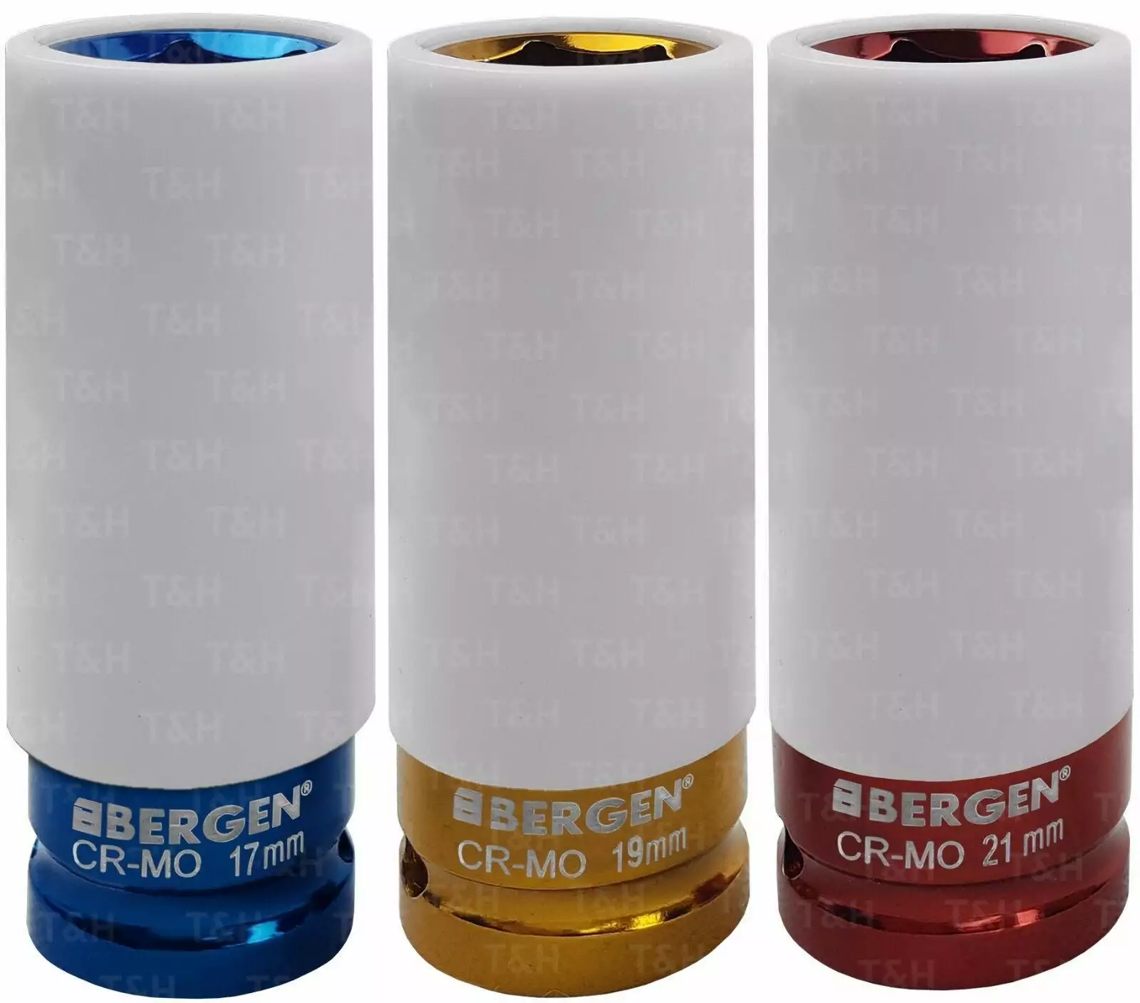 US PRO By BERGEN BERGEN Alloy Wheel Nut DEEP Thin Wall Impact Socket Set 1/2″drive 17mm 19mm 21mm