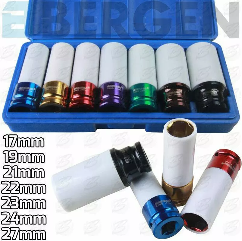 US PRO By BERGEN BERGEN Alloy Wheel Nut Thin Wall DEEP Impact Socket Set 1/2″drive 17mm – 27mm