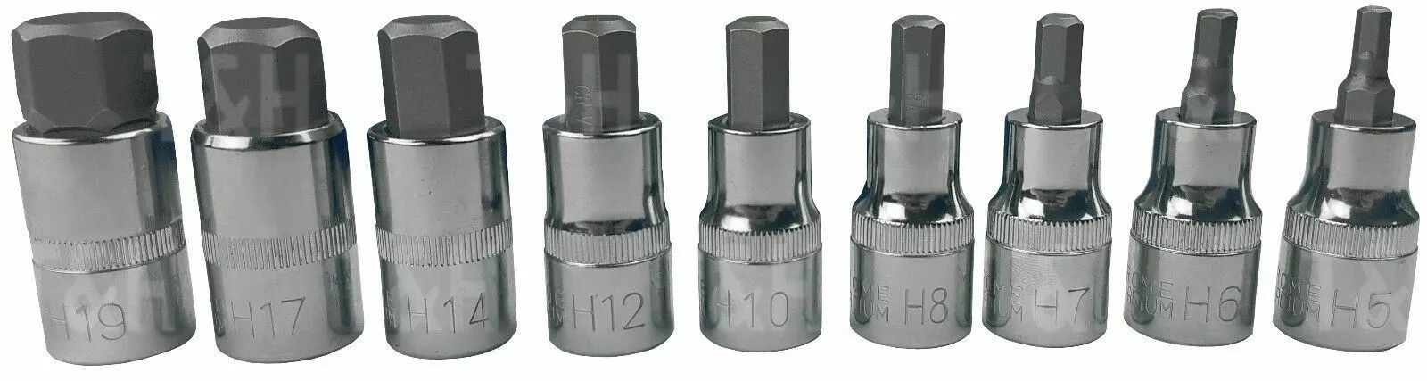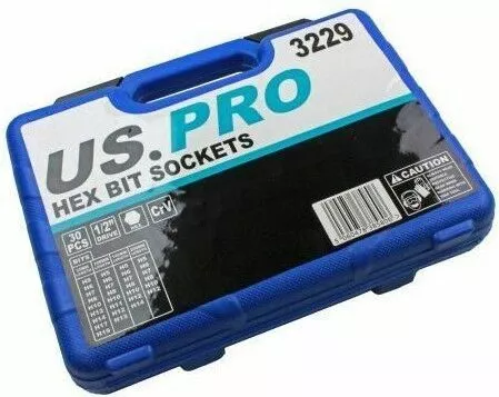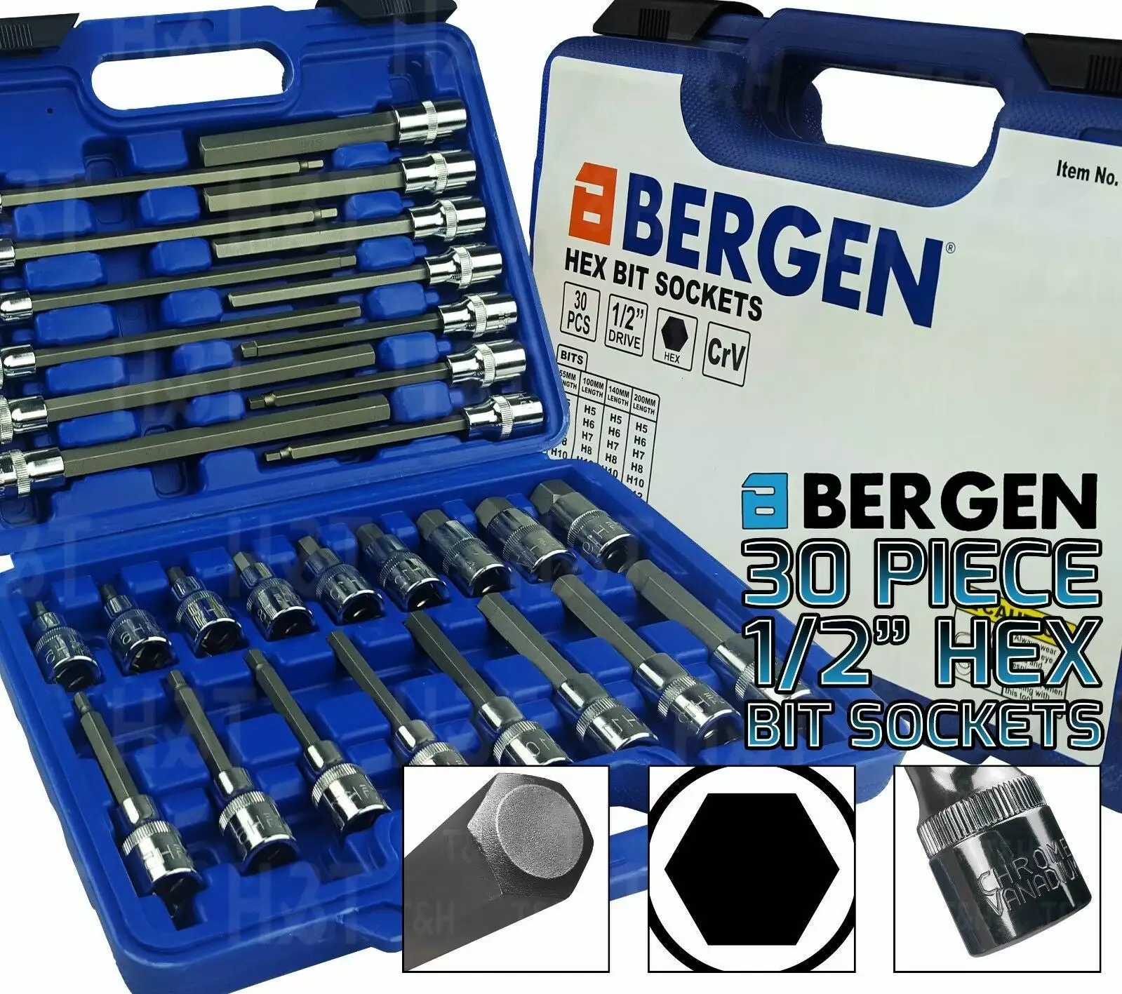 US PRO By BERGEN BERGEN Extra Long 30pc HEX BIT Socket Set 1/2″ Dr HEX Allen Keys Sockets 200mm L