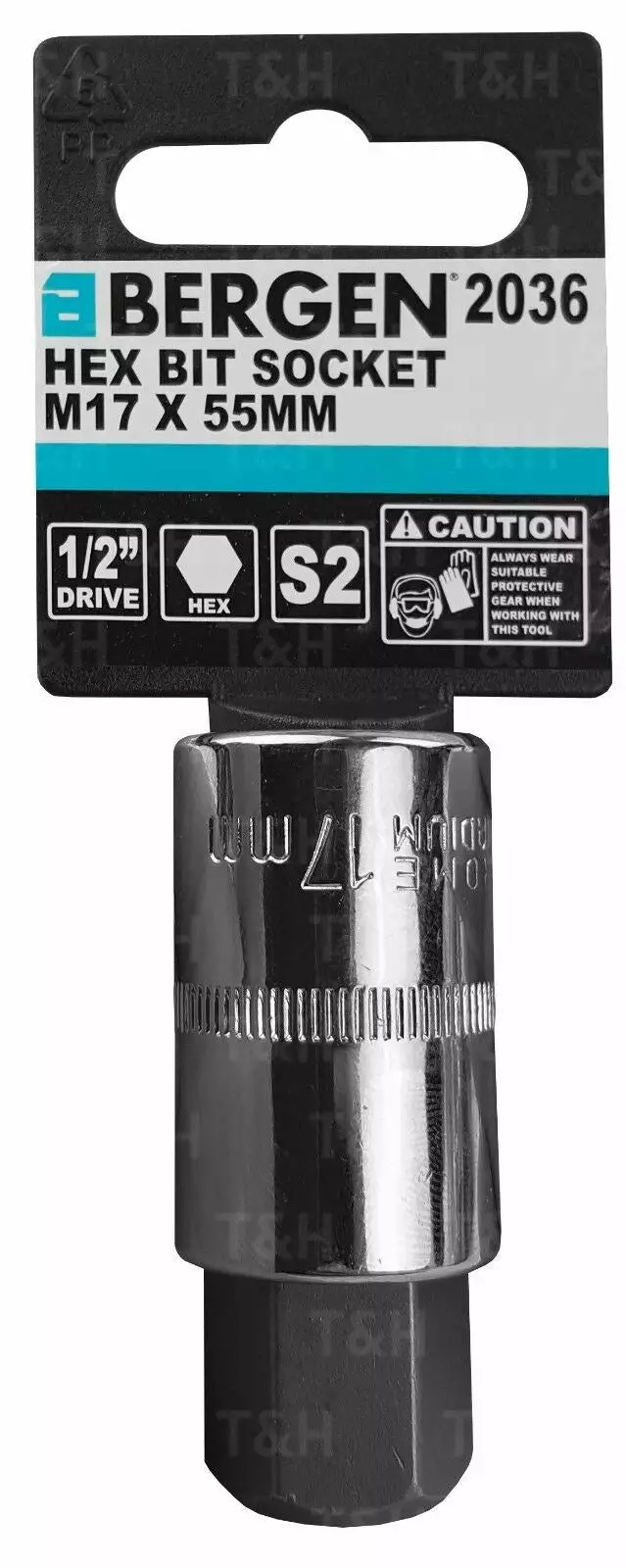 US PRO By BERGEN BERGEN Hex Socket H17mm 1/2″ Drive 55mm 17mm Hex Key Single Socket Allen Key