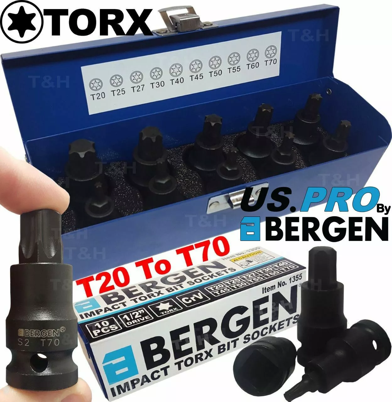 US PRO By BERGEN BERGEN IMPACT TORX BIT Sockets Set 1/2″ Drive Impact TX Star Sockets T20 To T70