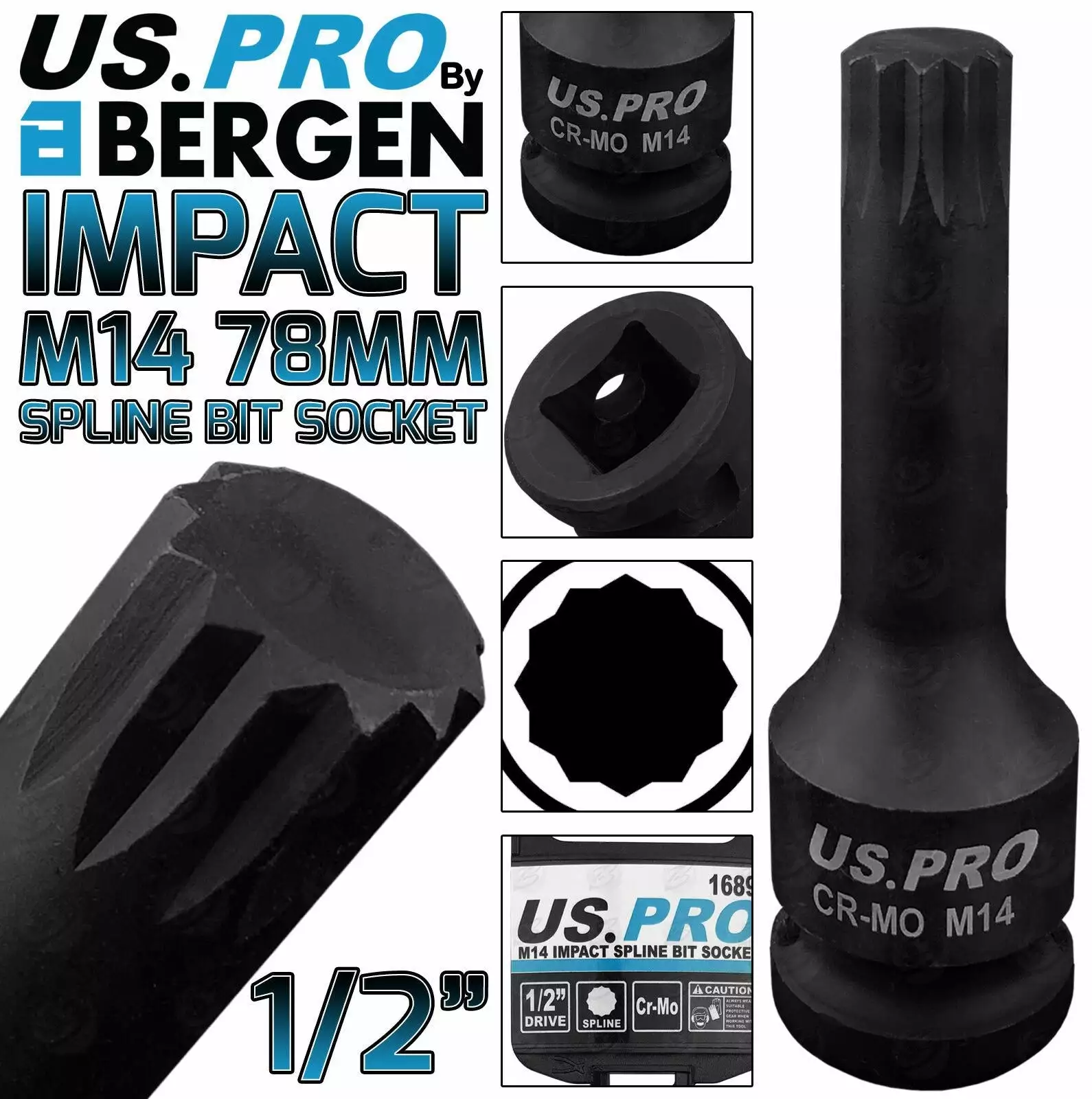 US PRO By BERGEN BERGEN M14 IMPACT SPLINE Bit Socket 1/2″Dr 78mm Long Reach Impact Spline M14 Bit